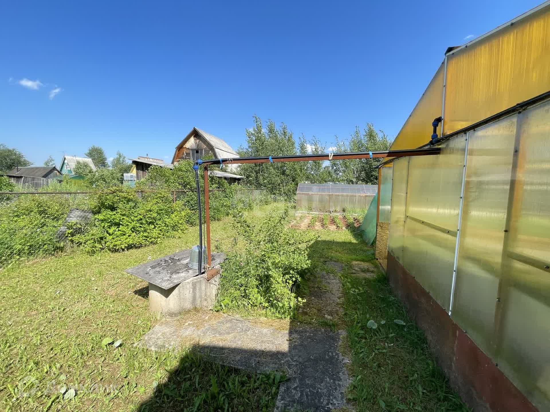 Сарай для инвентаря и дров, рядом с баней. На участке 2 теплицы 8,4 и 5 метров. Земля суглинок, разработан. Из кустарников есть красная смородина, крыжовник и ерга.