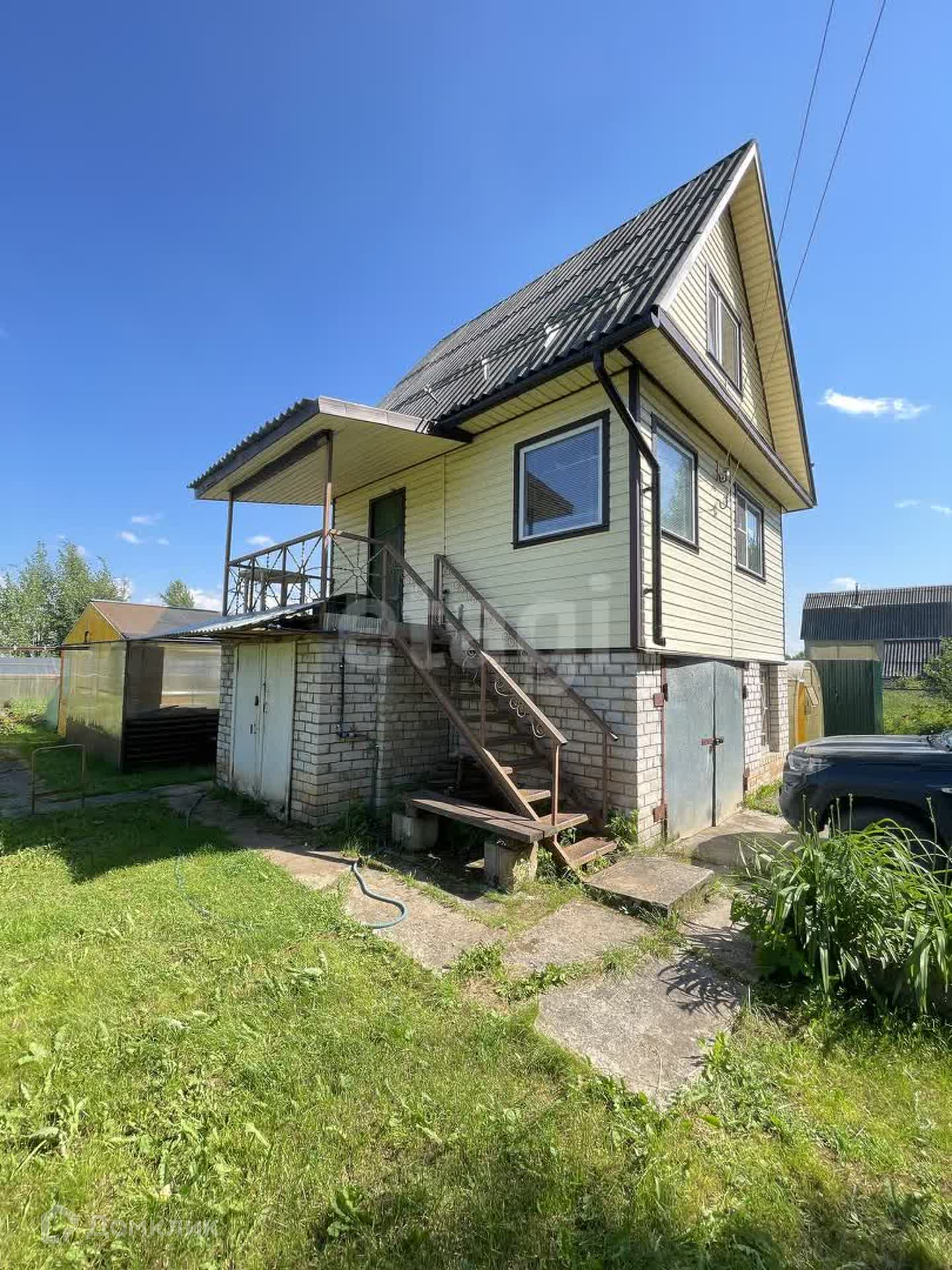 Дом на кирпичном фундаменте, цокольный этаж с гаражом и летней кухней. Из бруса основной дом и мансарда, обшит сайдингом. Внутри дома сделан ремонт, окна ПВХ, стены обшиты деревом, стоит печь, выложена кафелем. Заведен водопровод в дом, горячая вода при включении обогрева от электричества. Просторная зона кухни с дополнительным освещением. Телевизор ловит 21 программу. Большие двуспальные кровати, создают уют и комфорт. Встроенные шкафы, в которые удобно размещать вещи.