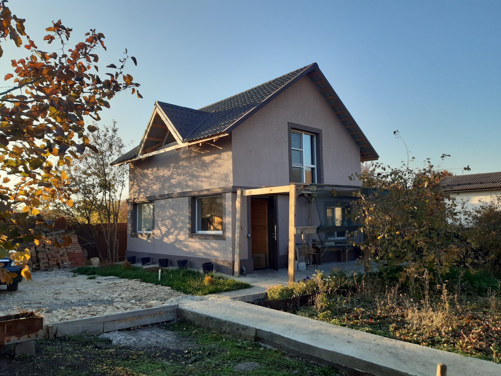 2 этаж полностью из дерева , 1 этаж черновой из керамзитоблока, лестница изготовлена по индивидуальному проекту на заказ, получено разрешение на газ, проект на руках, остался монтаж по участку, делали для себя. Дом изготовлен из качественных строительных материалов, металлочерепица покрашена антигравием, фасад из дорогих материалов, зимой очень хорошо держит тепло даже без отопления. По участку тропинки залиты бетоном, на участке теплица, сад с насаждениями яблони, груши, калина, вишня, боярышник, виноград и клубника. В саду газонная трава, перед домом газонная трава с туями. Также на участке выгребная яма, погреб, ёмкость под воду. По периметру новый забор. Хорошие откатные ворота (4 м.). Дорогие окна с качественной фарнитурой. Перед домом хороший заезд под 4 автомобиля. Документы готовы в полном порядке. Продажа от собственника, с продажей не торопимся.