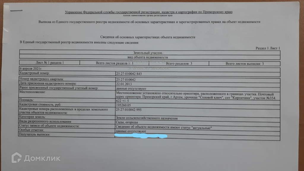 Продается участок в Артёмовском городском округе снт «Кирпичики»!