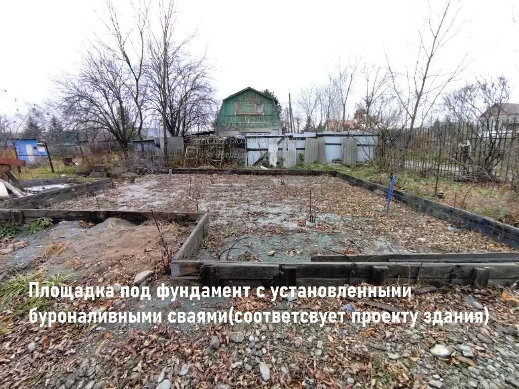 — площадка под фундамент с установленными буроналивными сваями (соответствует проекту дома)