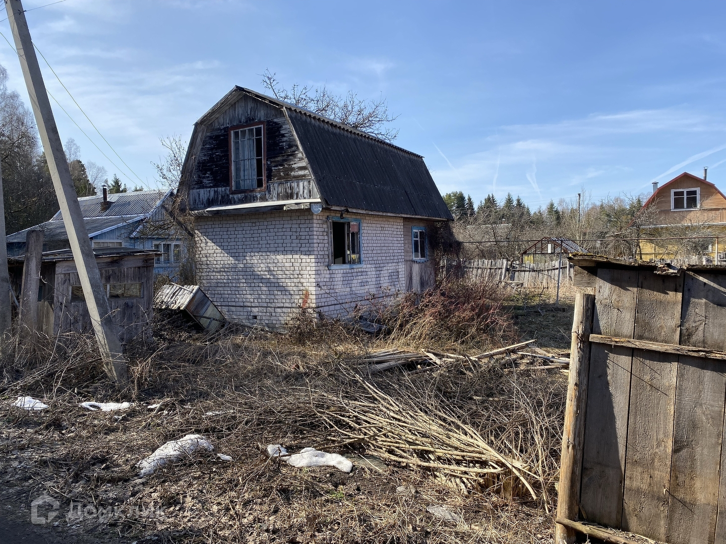 Дача построена из кирпича с деревянной пристройкой. Фундамент - свайный. Газ заведен с дом, установлена газовая плита. Удобства на улице. Летний водопровод. Рядом родник с чистейшей водой. Рядом есть магазин и автобусная остановка.