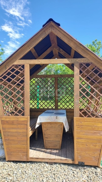 Дачный домик: выполнен из сэндвича панелей, хорошие пластиковые окна, железная дверь, перед домом просторная веранда. Рядом с домом построена новая баня-сауна, выделена зона для отдыха с беседкой и качелями.