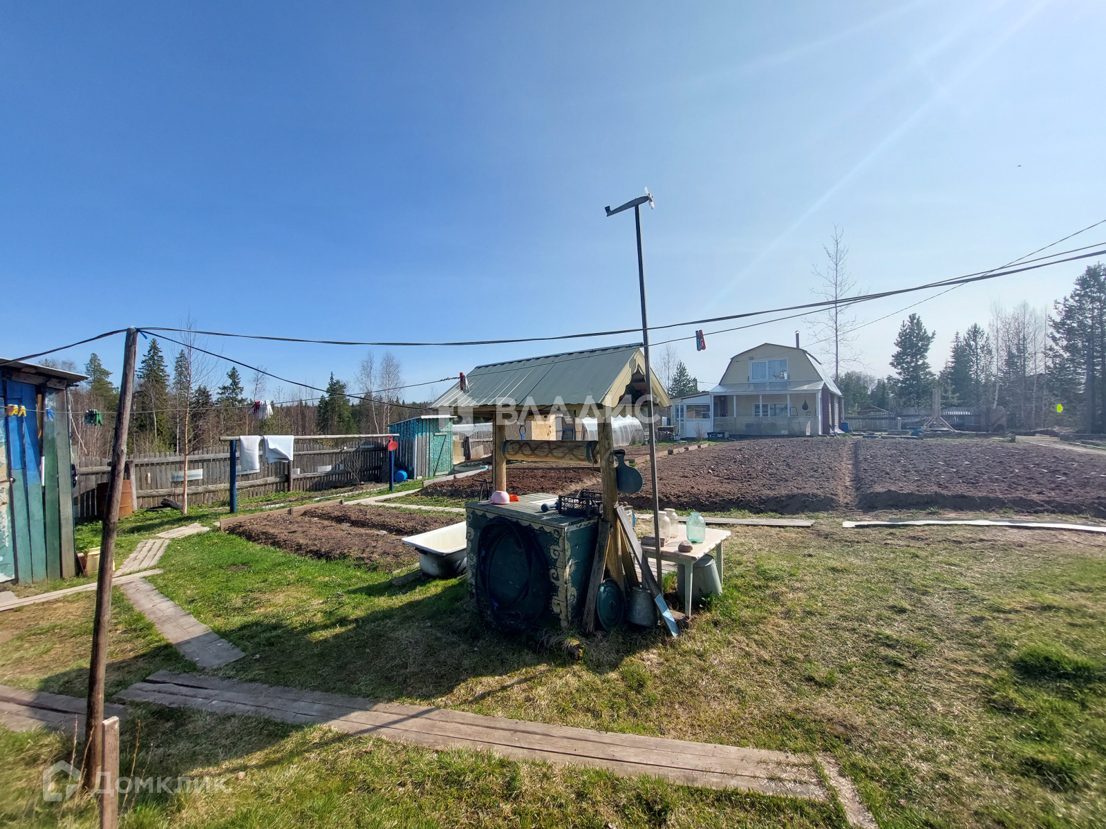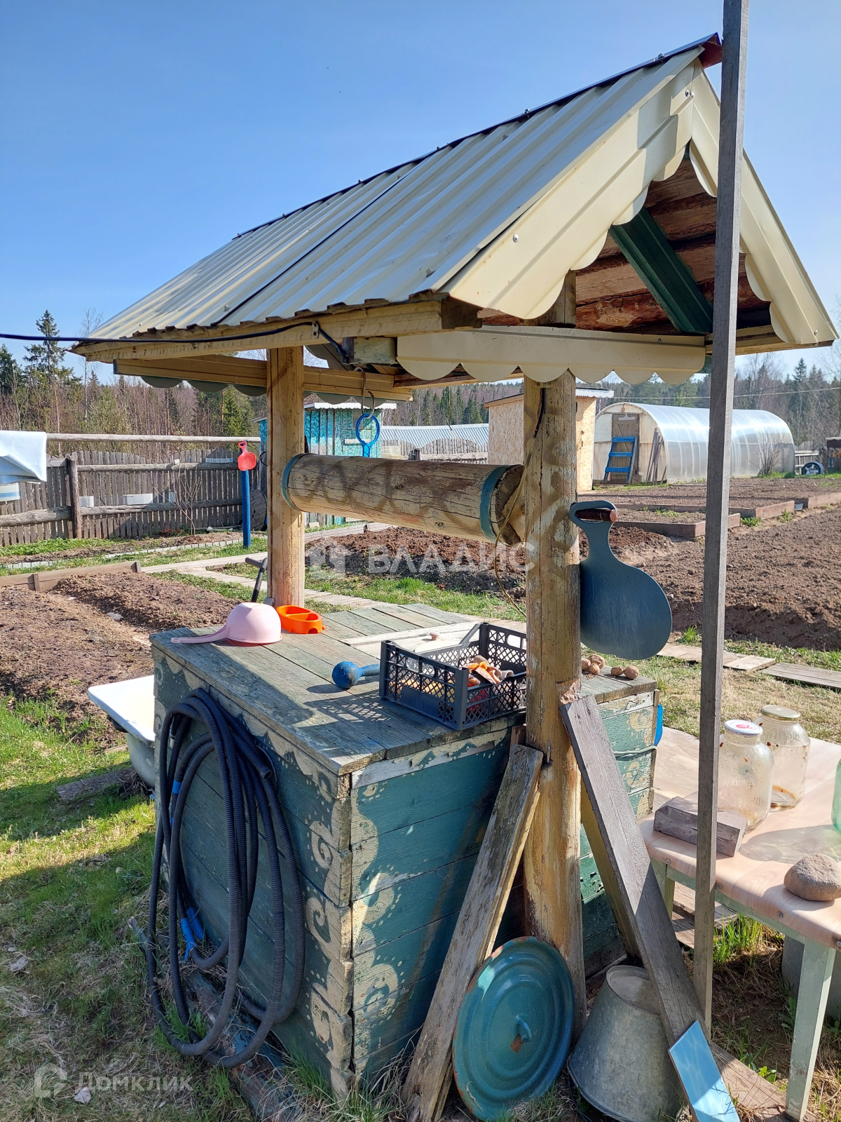 1) 2 колодца с питьевой водой, 1 колодец расположен рядом с домом (от колодца осуществляется водоснабжение дома, установлен насос), 1 колодец расположен рядом с баней;