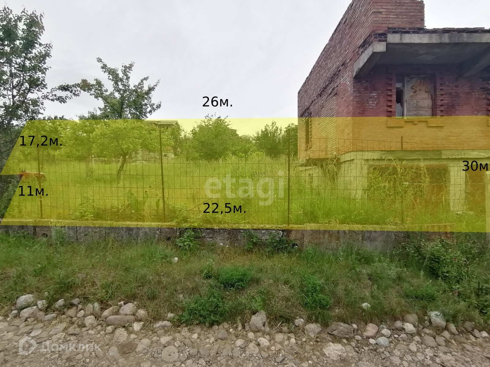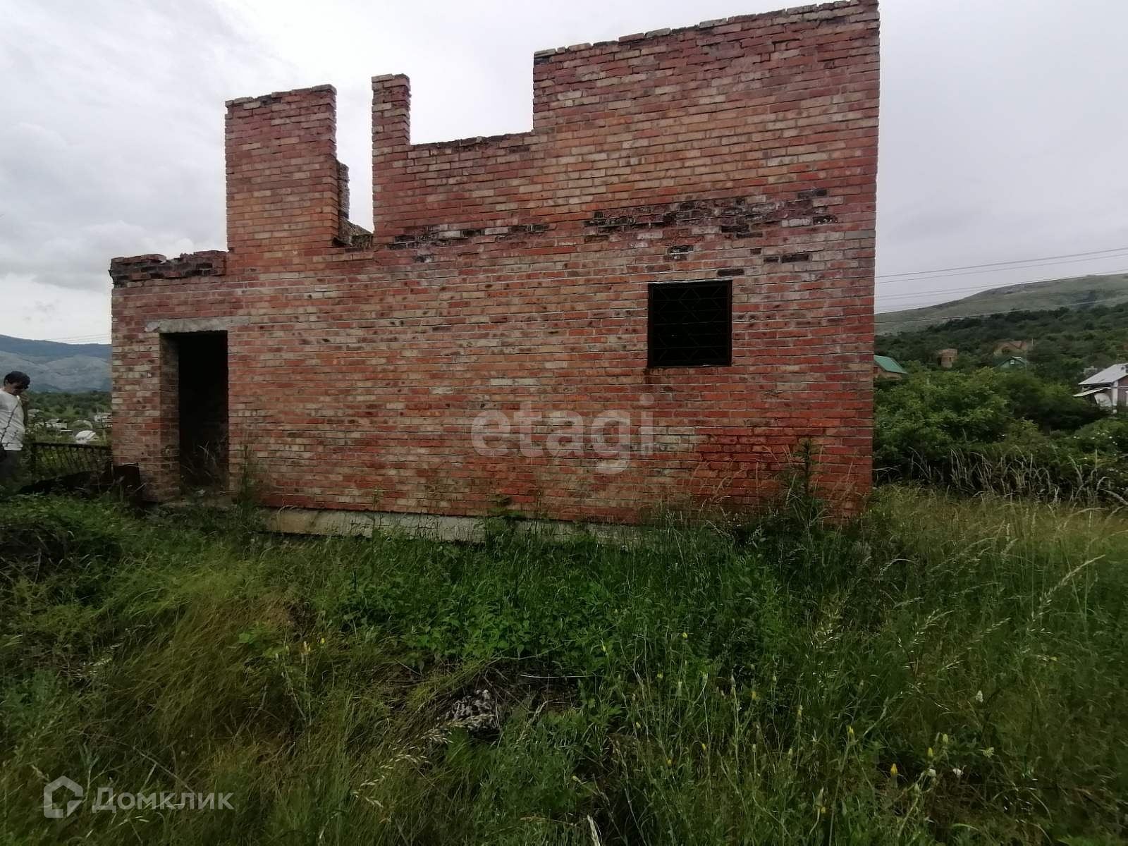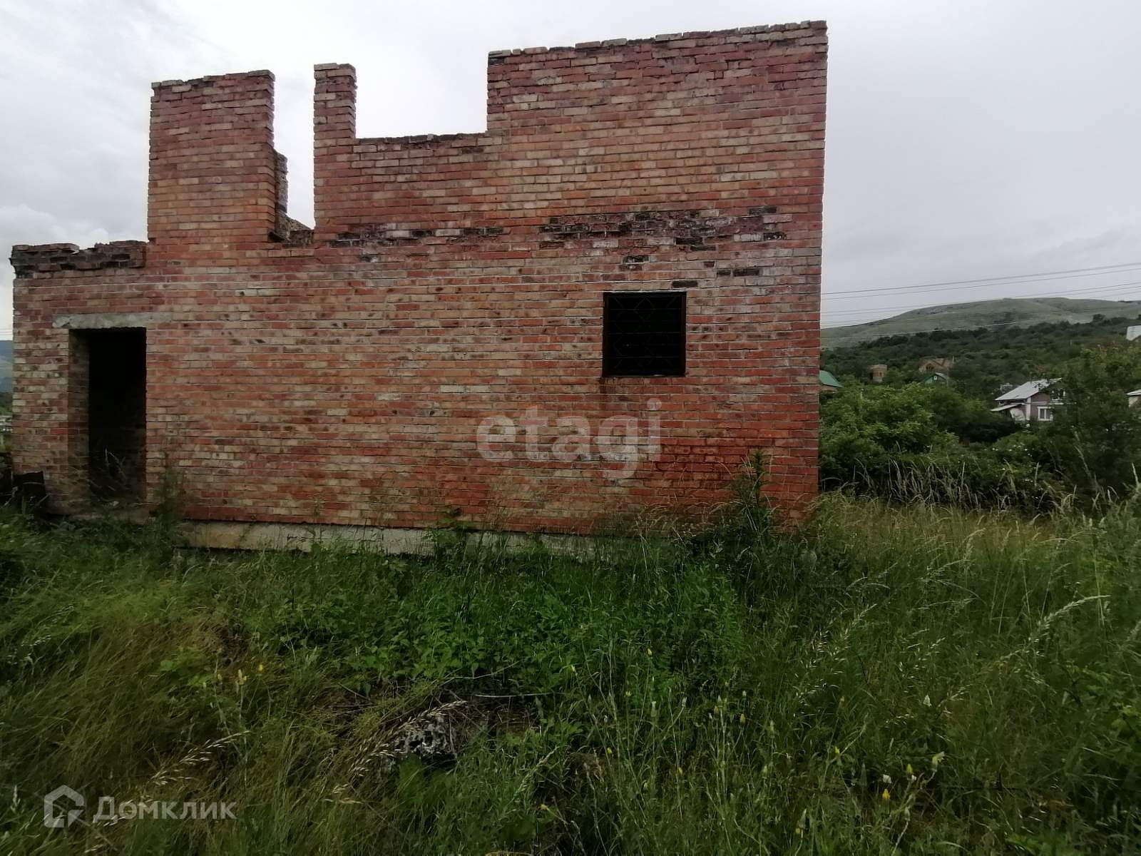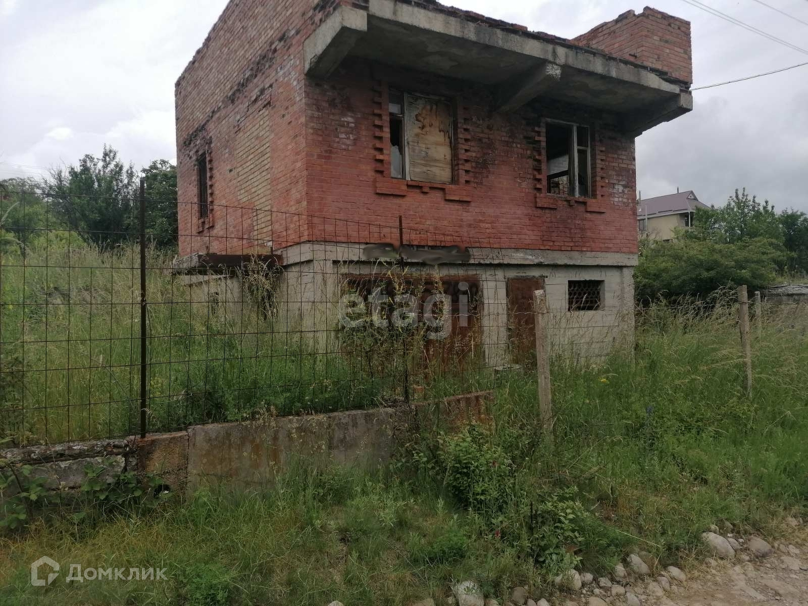 На участке имеется недострой 2 этажа, 1 этаж монолитный,2 этаж из жженного кирпича.