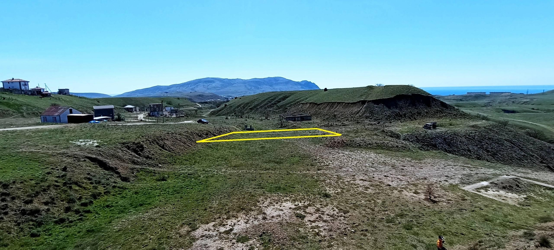 Прекрасное место для строительства дома, размер ~ 16 на 23 метра. Есть нормальный подъезд. Соседи живут постоянно. Прекрасный вид на море и горы. Есть возможность подключения к электросети