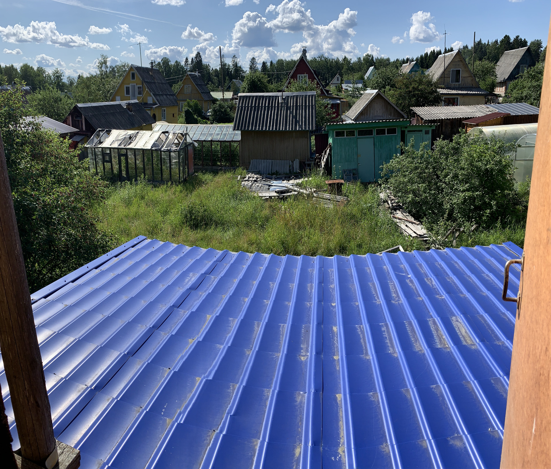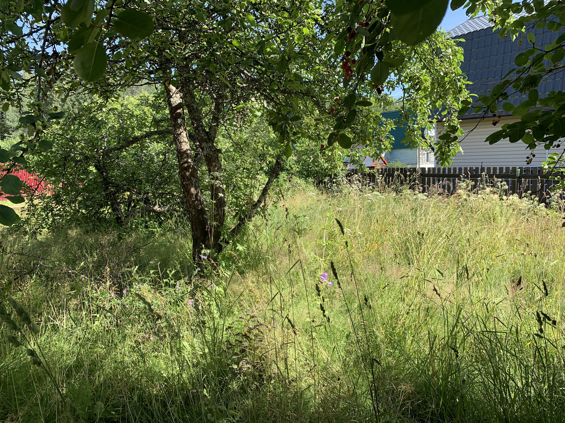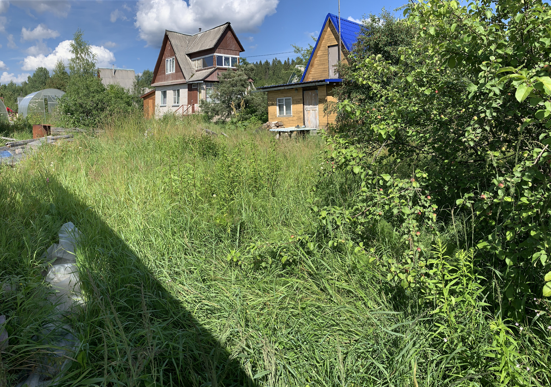 - На участке расположены новая хоз. постройка и туалет, три яблони и листопадный кустарник Ирга, кусты смородины, крыжовник, и т.д.;