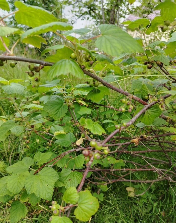 Несколько кустов с красной и чёрной смородиной