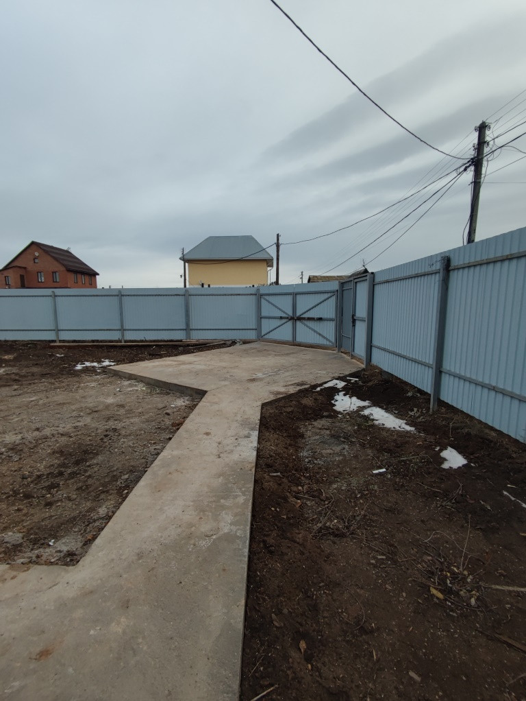 Во дворе: дорожки забетонированы, парковочное место под авто.