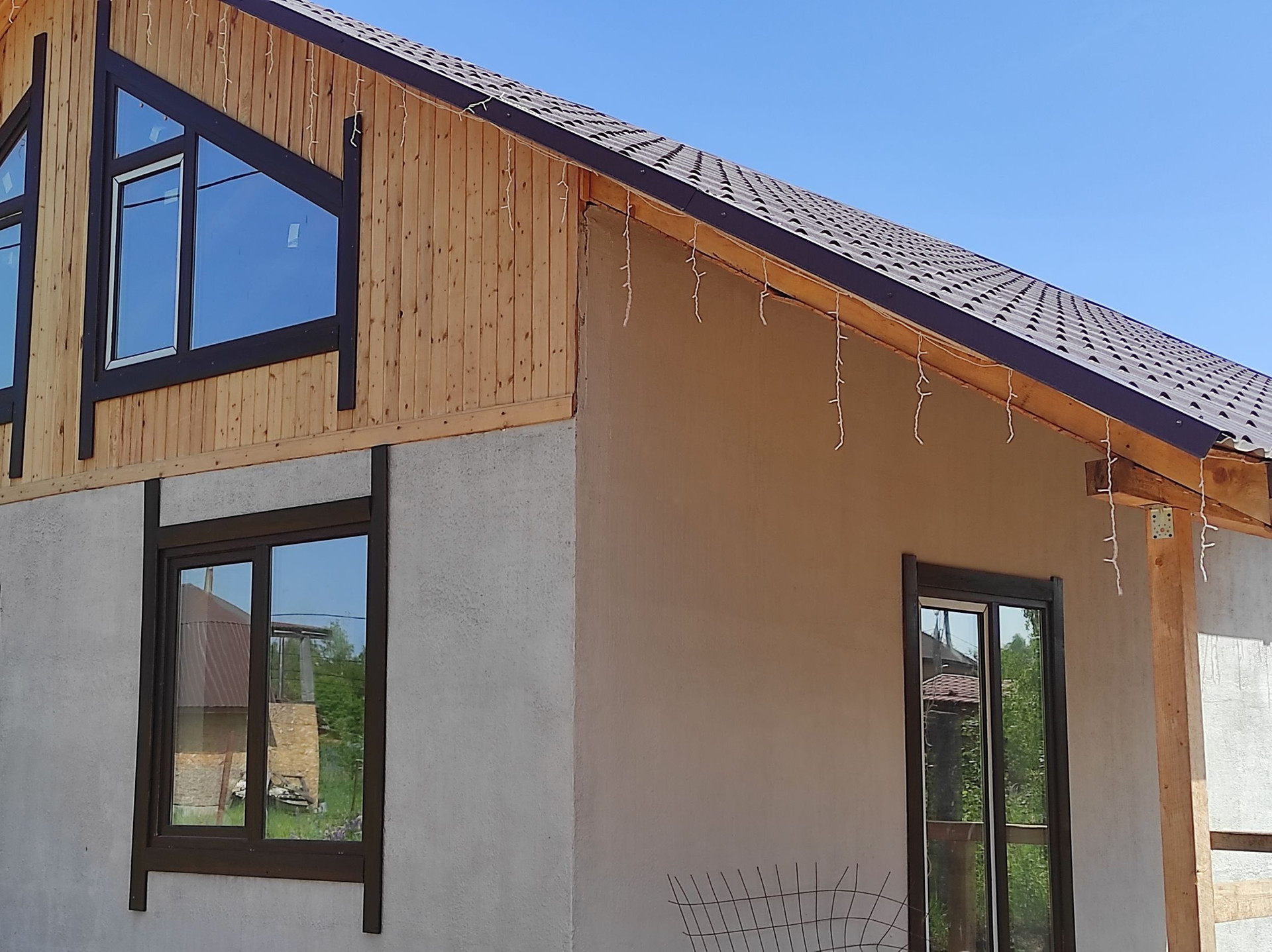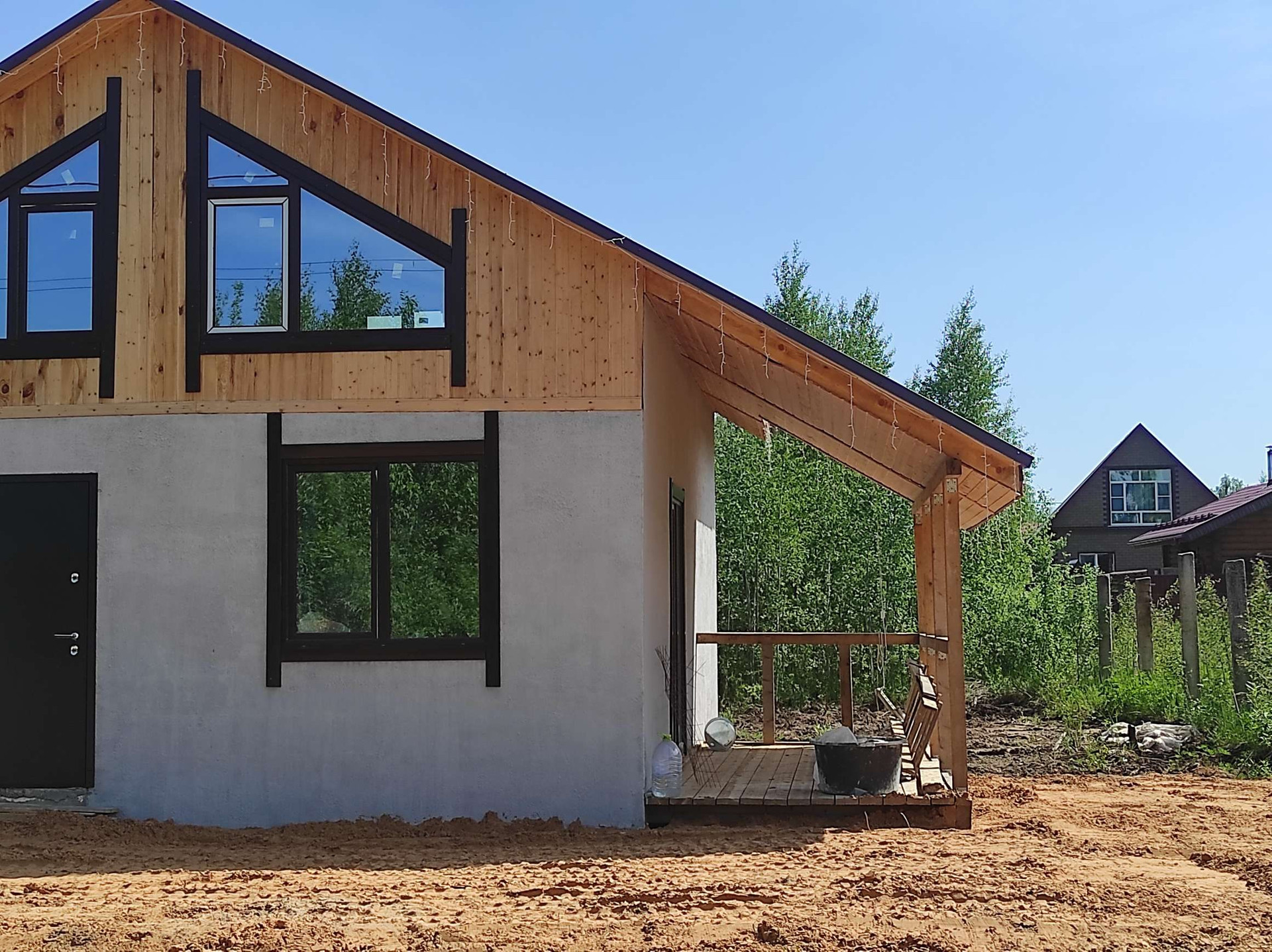 Дом у водоема!Стены первого этажа - пенополистерольная несъёмная опалубка,залито бетоном с армированием.Второй этаж без отдеки,мансарда.Терасса 8м- входит в площадь дома.Дом термос,очень теплый,у соседей такой же.
