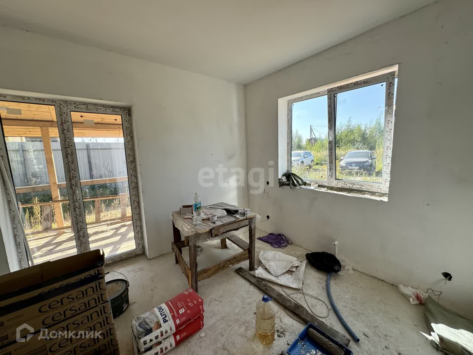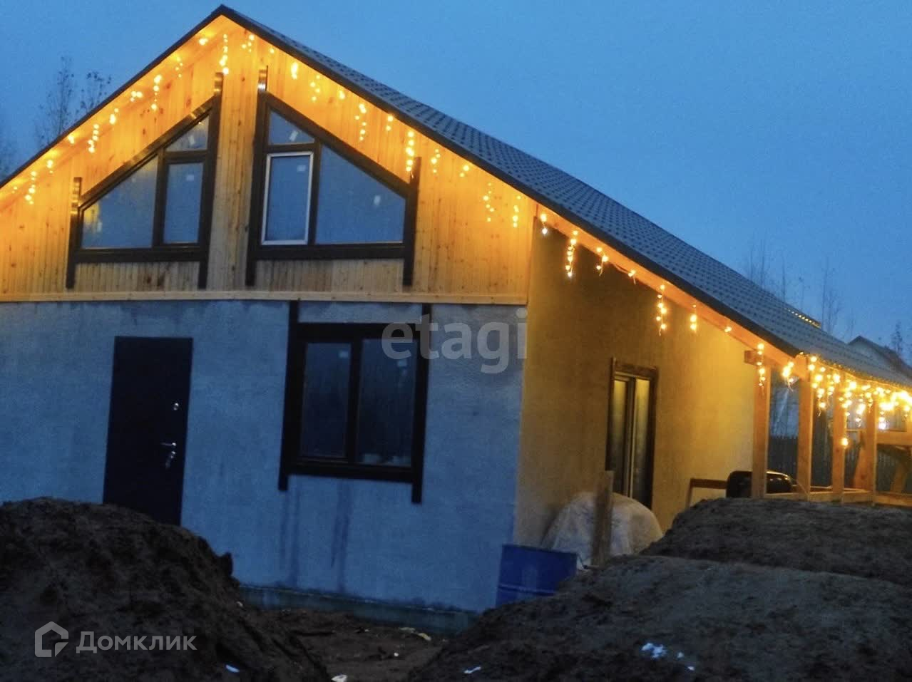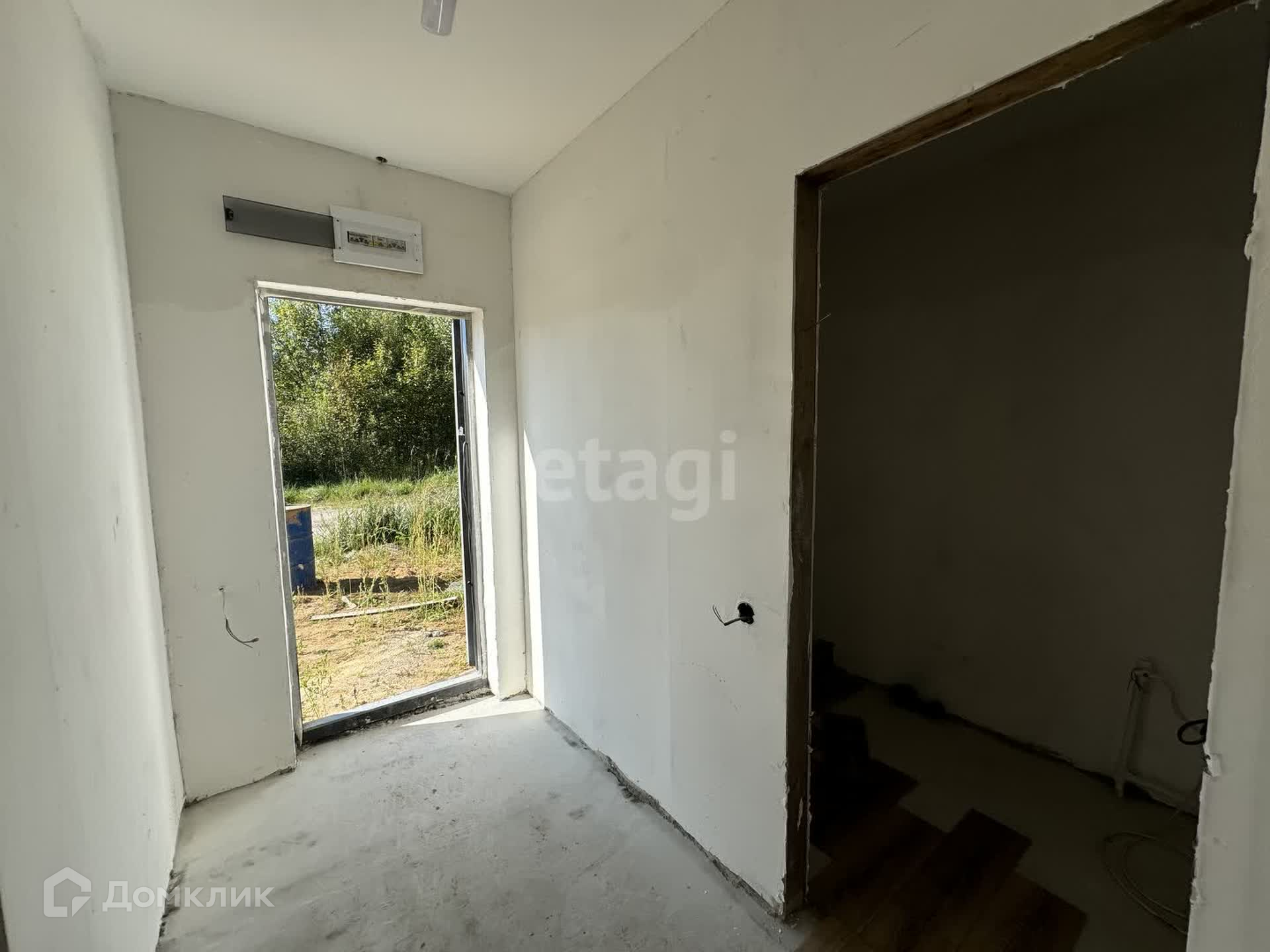 Стены первого этажа армированный бетон, утеплитель пенополистерол 10 см: 5 снаружи, 5 внутри, между ними бетон.Панорамный выход на террасу.Фундамент лента, полы по грунту, залита армированная стяжка, плита. Есть второй этаж.Куплена плитка для коридора и санузла.