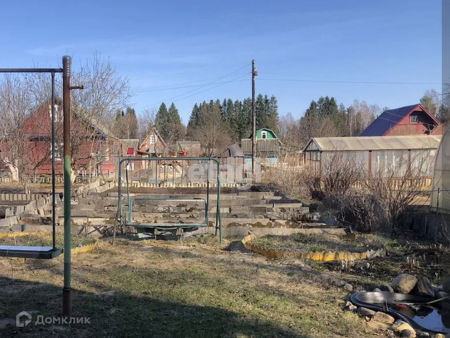На участке расположены фруктовые деревья, плодовые кустарники, 1 сотка клубники, участок разработан, плодородная земля, у дома газон и альпийская горка с прудиком, качели, много цветов, сразу за забором грибной лес.