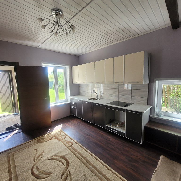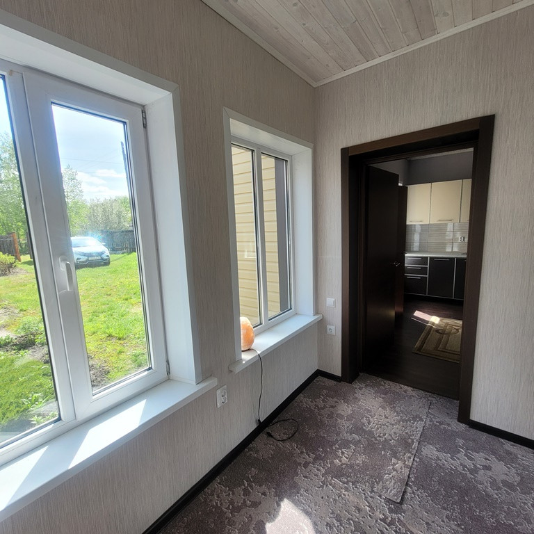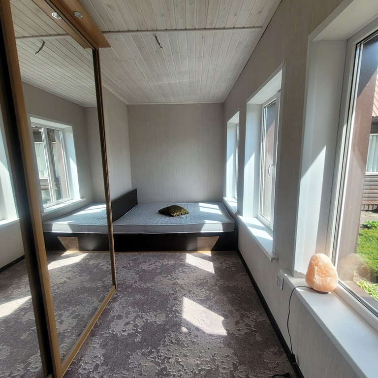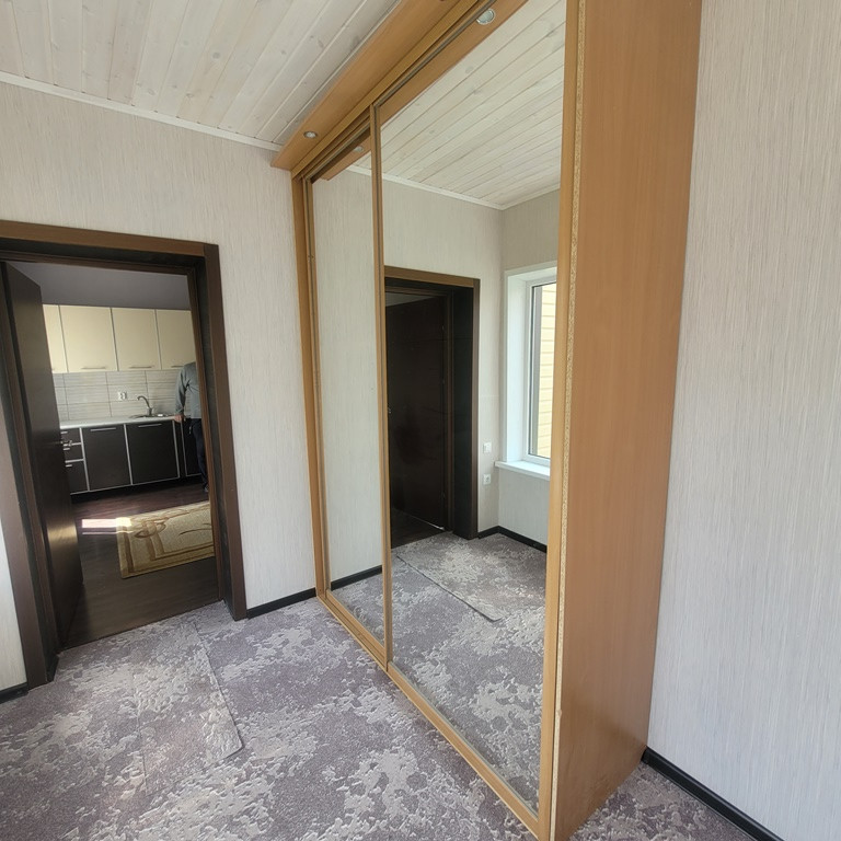 Дому 3 года, пеноблок, отделан сайдингом. На первом этаже – прихожая, кухня-столовая, спальная комната, зал для отдыха, место для санузла. Второй этаж мансардный– в стадии отделки, на данном этапе – свободная планировка. Везде стеклопакеты. Встроенная кухня, в комнатах встроенные шкафы, мебель для отдыха и сна. Комнаты и столовая полностью сделаны.