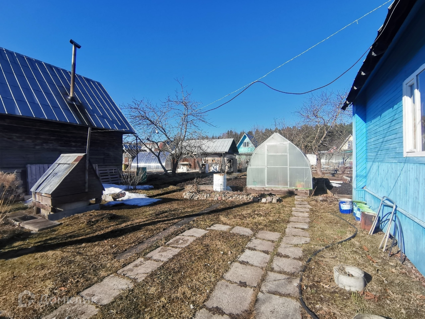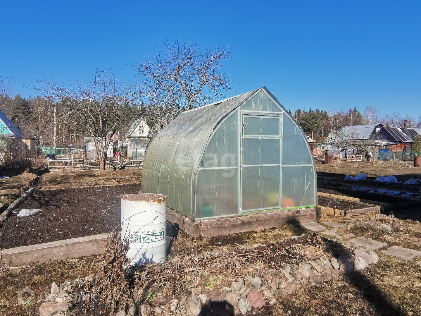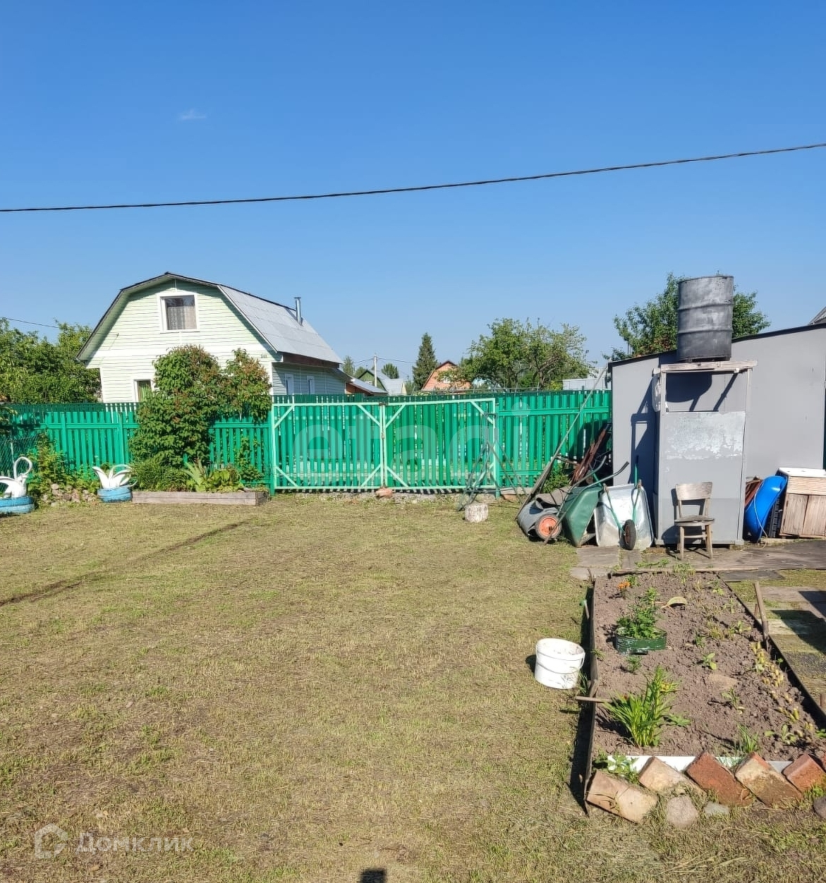 Участок сухой, на участке высажены плодовые деревья- яблони, каштан, сирень, земля обработана, оформлены гряды. Колодец на два участка ( 4 кольца), вода питьевая, вывод в дом с помощью насоса.