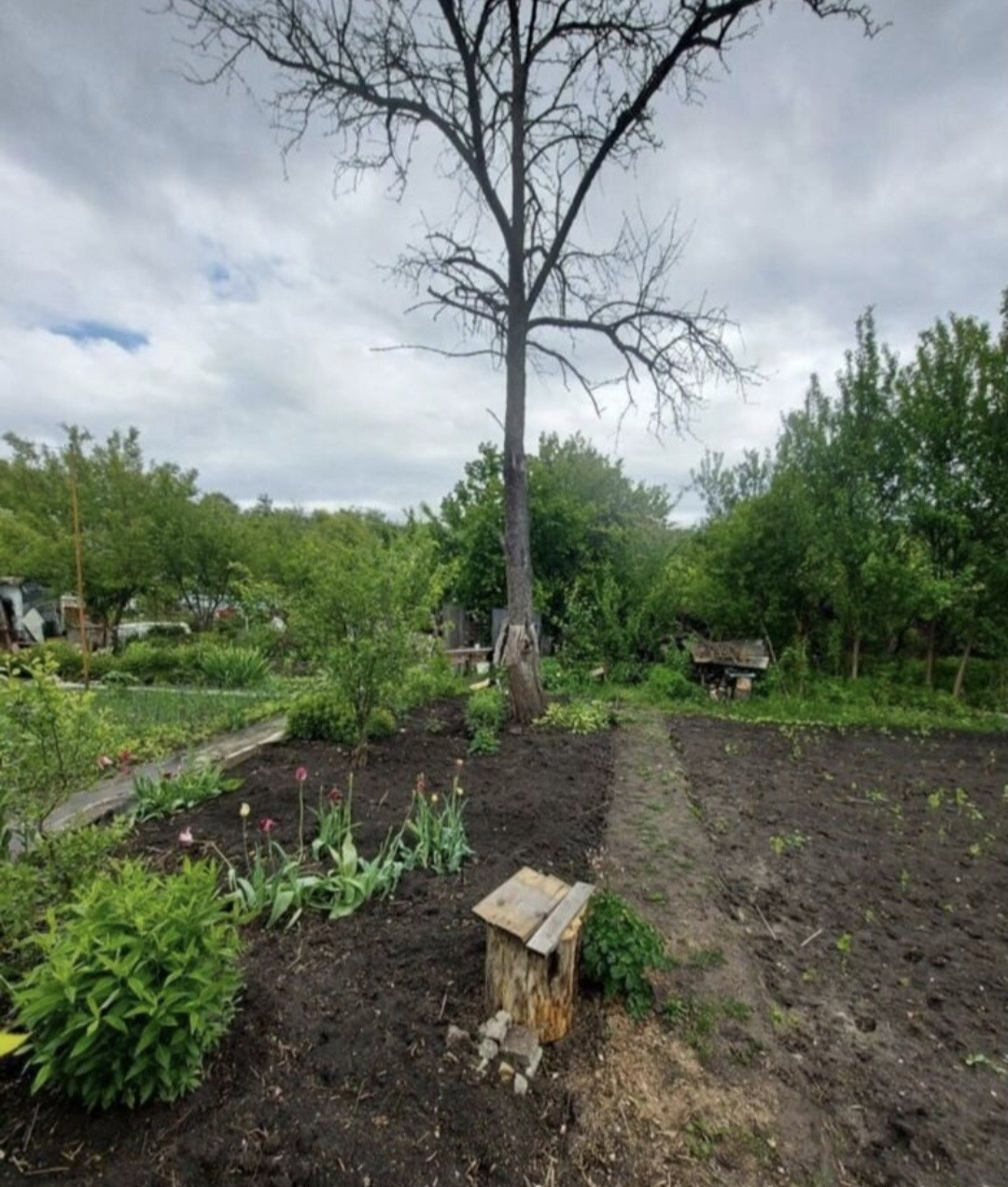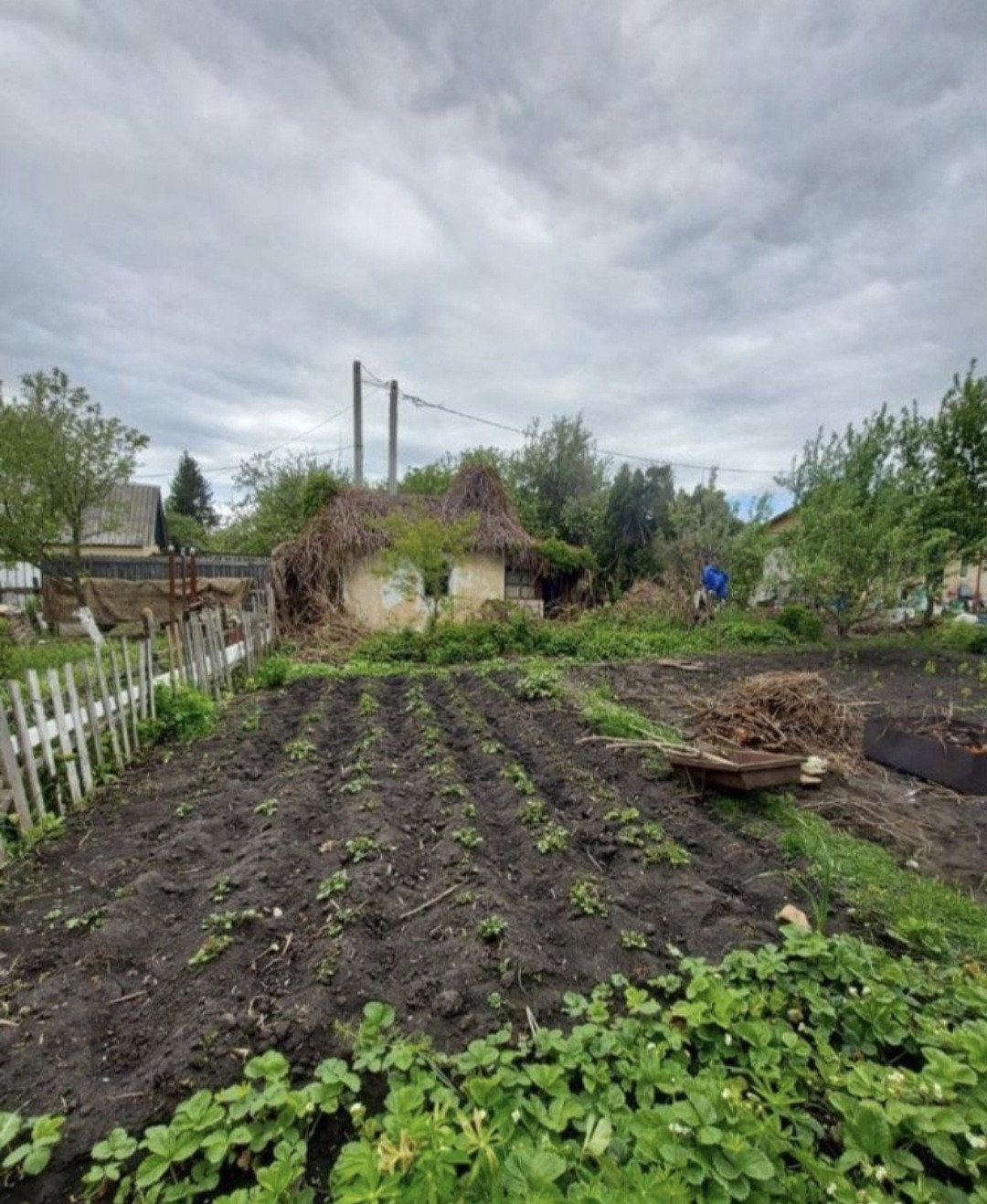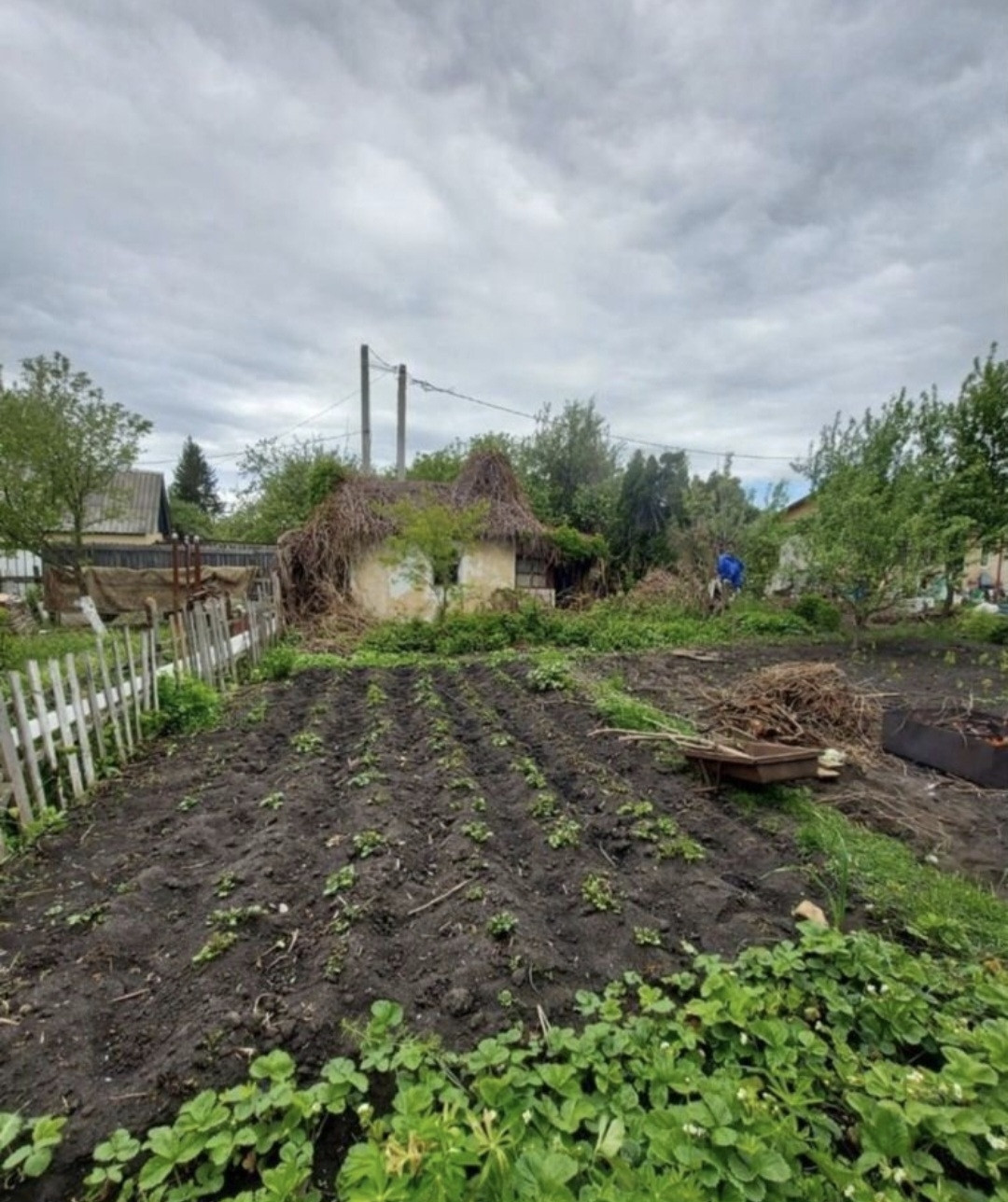На участке есть скважина, но её надо чистить. Электрический столб тоже есть.