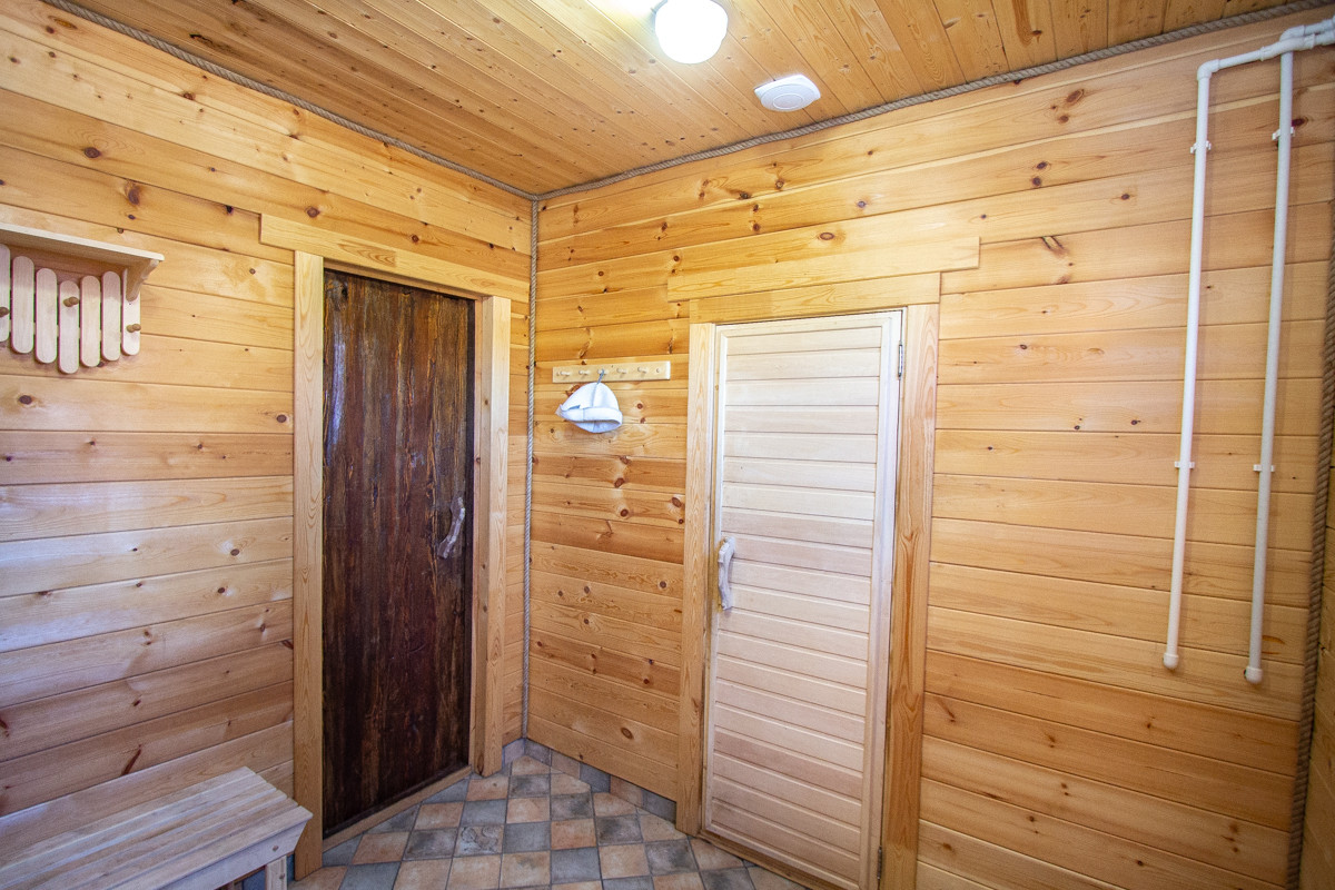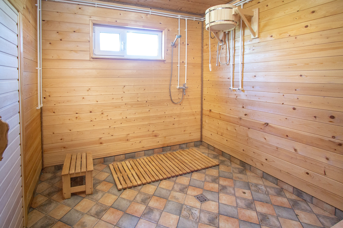 Материалы: стены утепление 150, перекрытие потолка 150, крыша как холодный чердак. Полы утепление 50 мм Эппс, на полах моечной и парилке керамогранит, в моечной и парилке сливы сделаны в канализацию. В комнате отдыха и прихожей коммерческий ламинат немецкий. В бане все окна 70 мм двухкамерные Rehau. Парилка и полки обшиты липой. Моечная, потолки обшиты вагонкой сосна. Комната отдыха и прихожая обшита имитация бруса сосна.