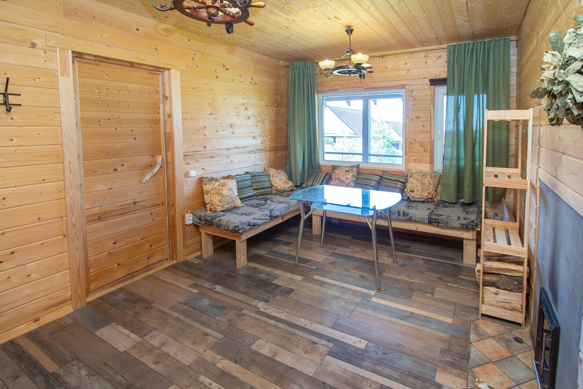 В бане: все скамейки и стиллажи, тахта, водонагреватель на 100 л. (остальная часть мебели, техники останутся по договоренности с собственником).