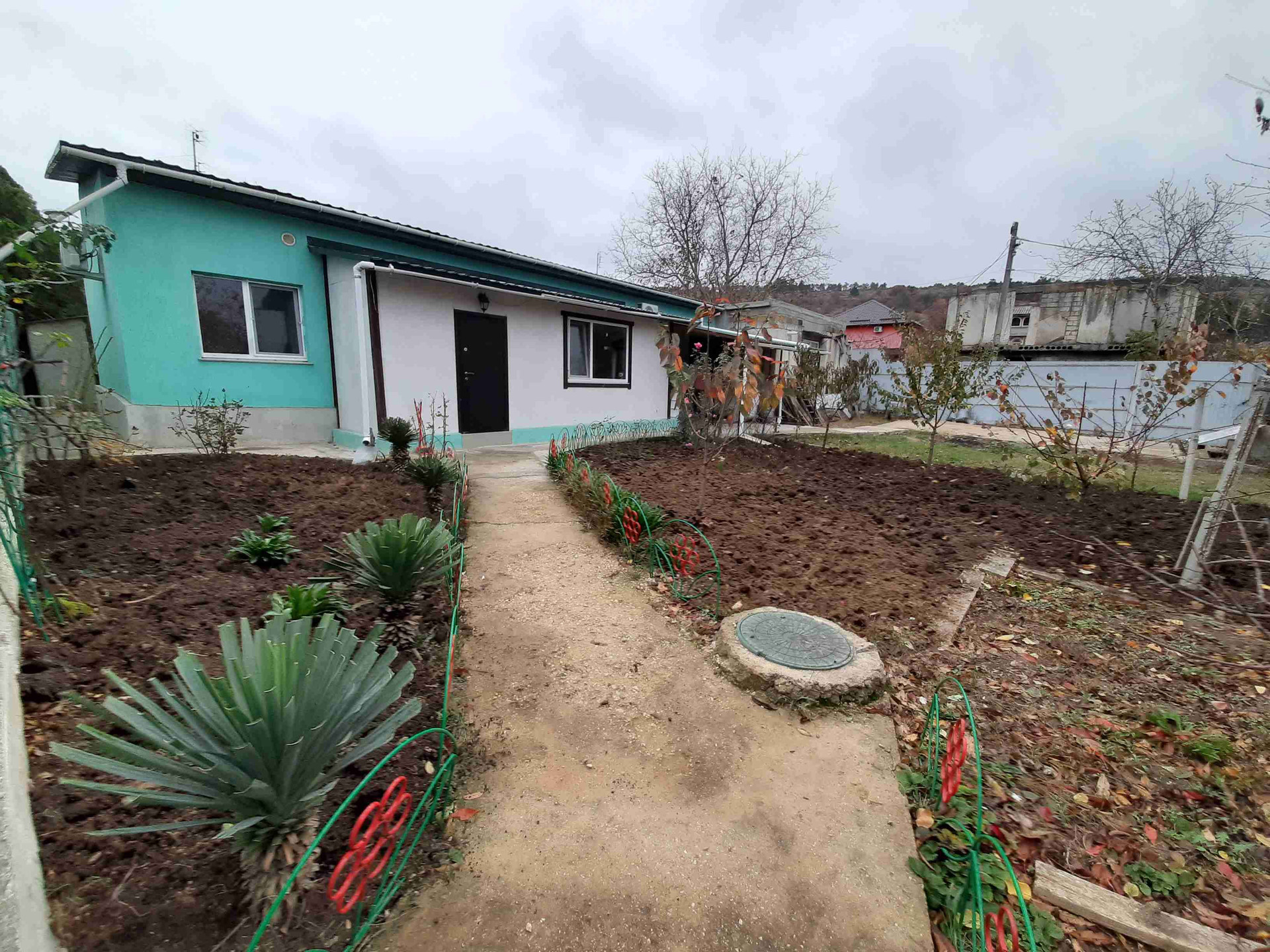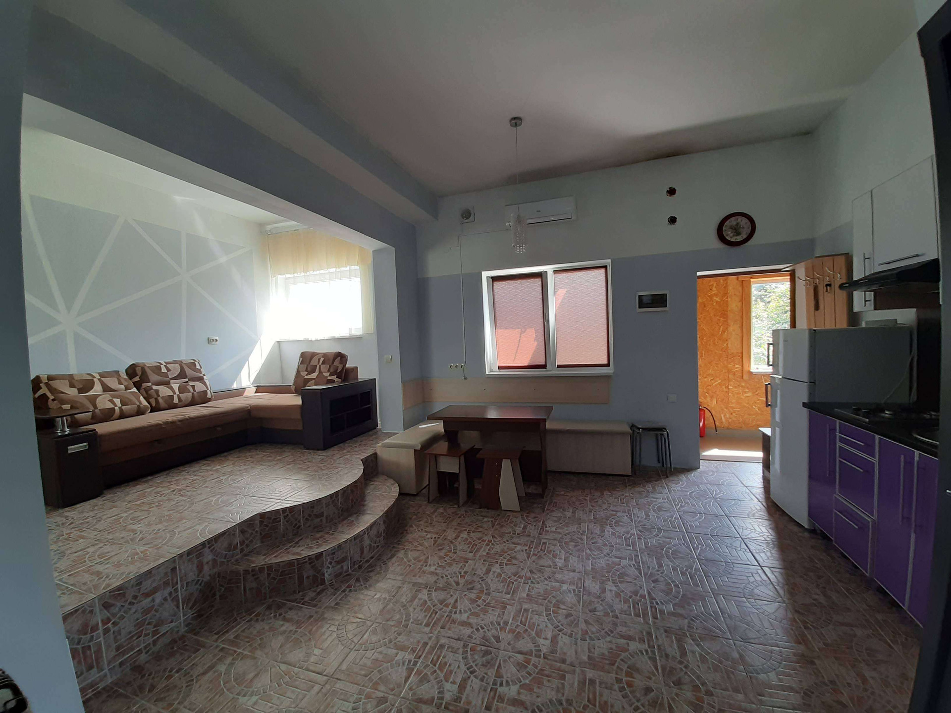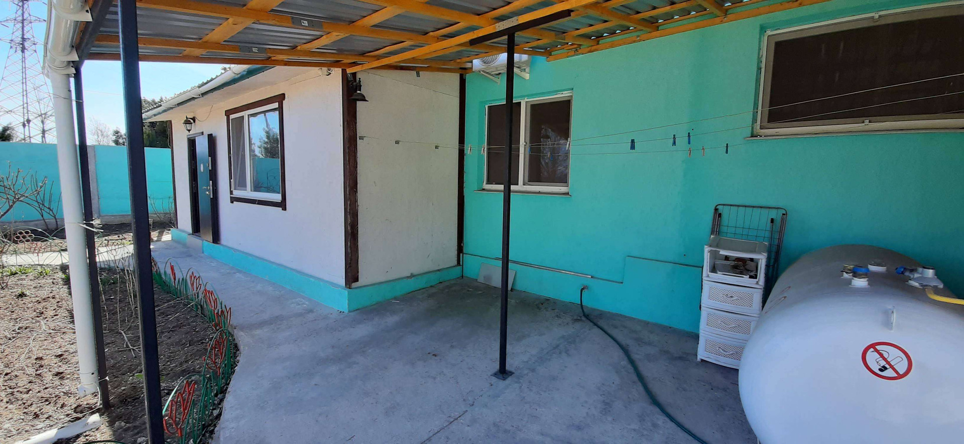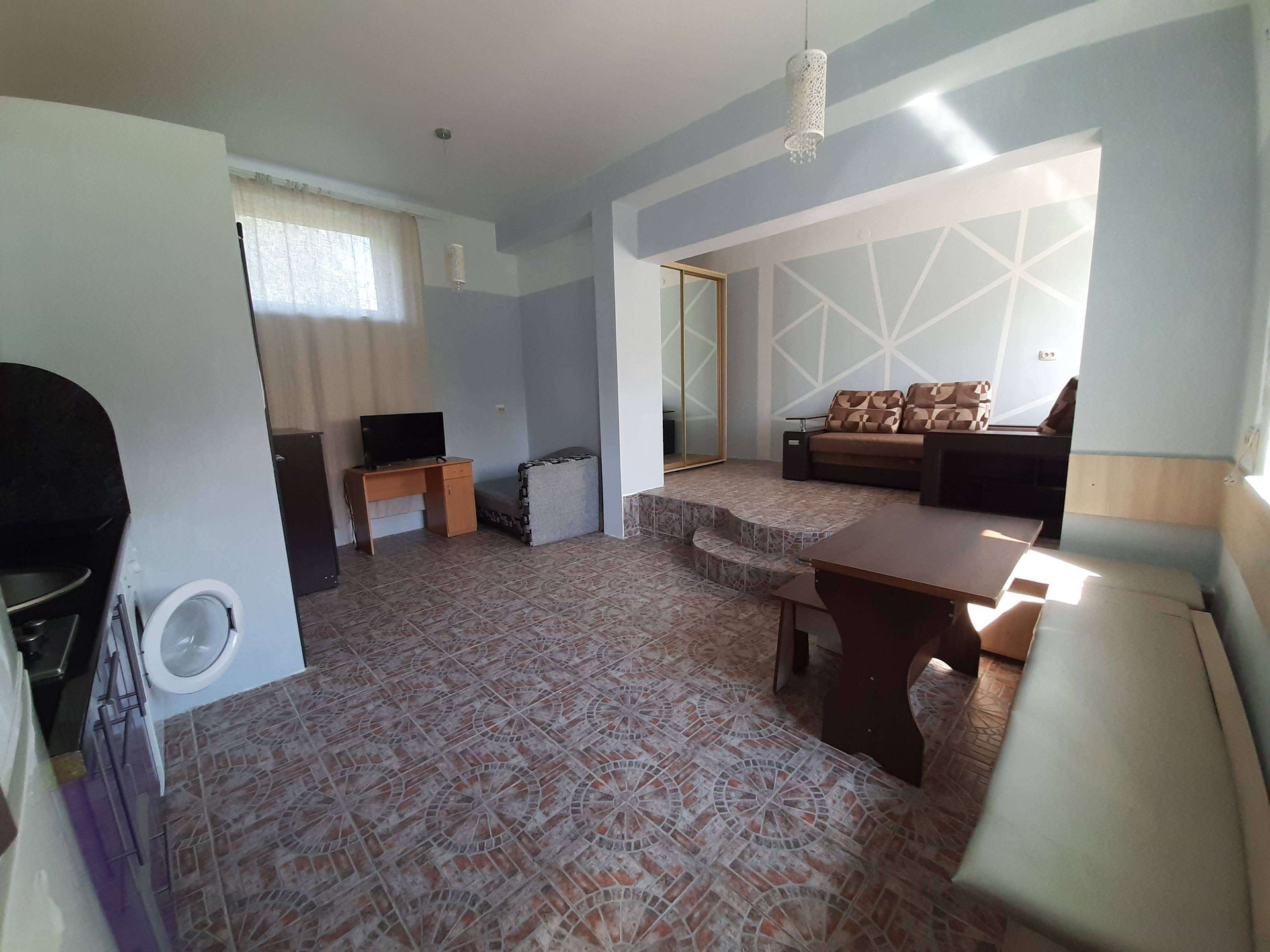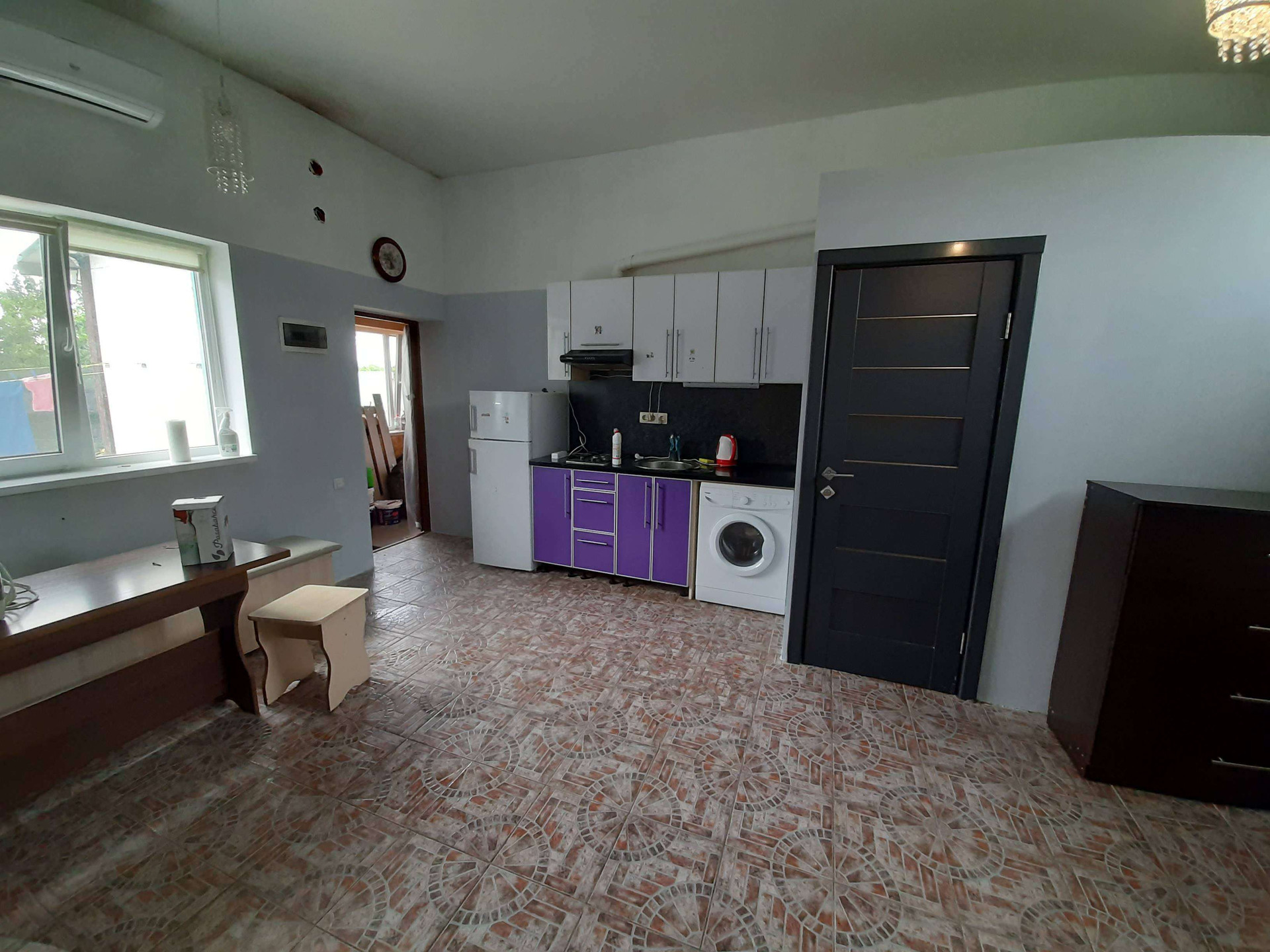 Одно этажный  дом постройки 2017 года,на участке 5 соток. Дом состоит из трёх студий, гаража и подсобное помещение.