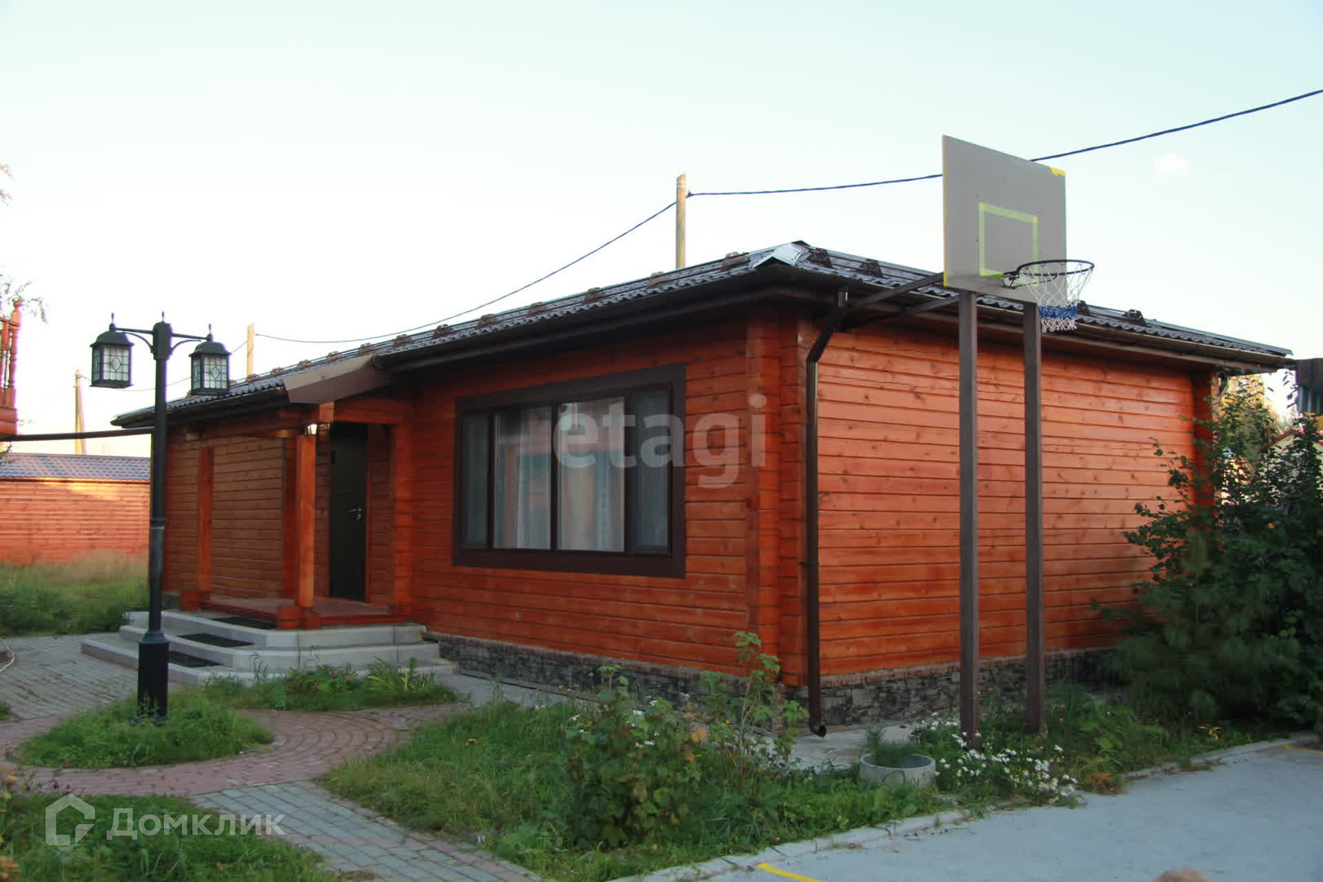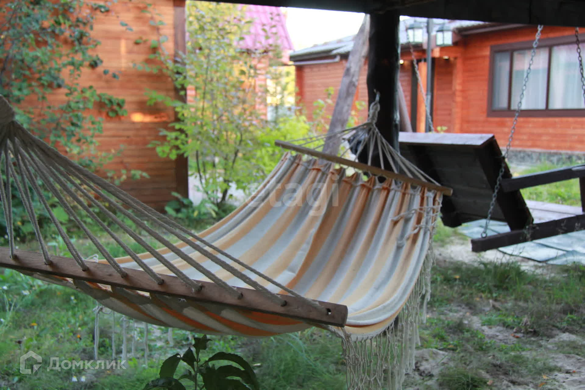 Детский городок: домик, качели, гамак, горка, баскетбольная площадка.