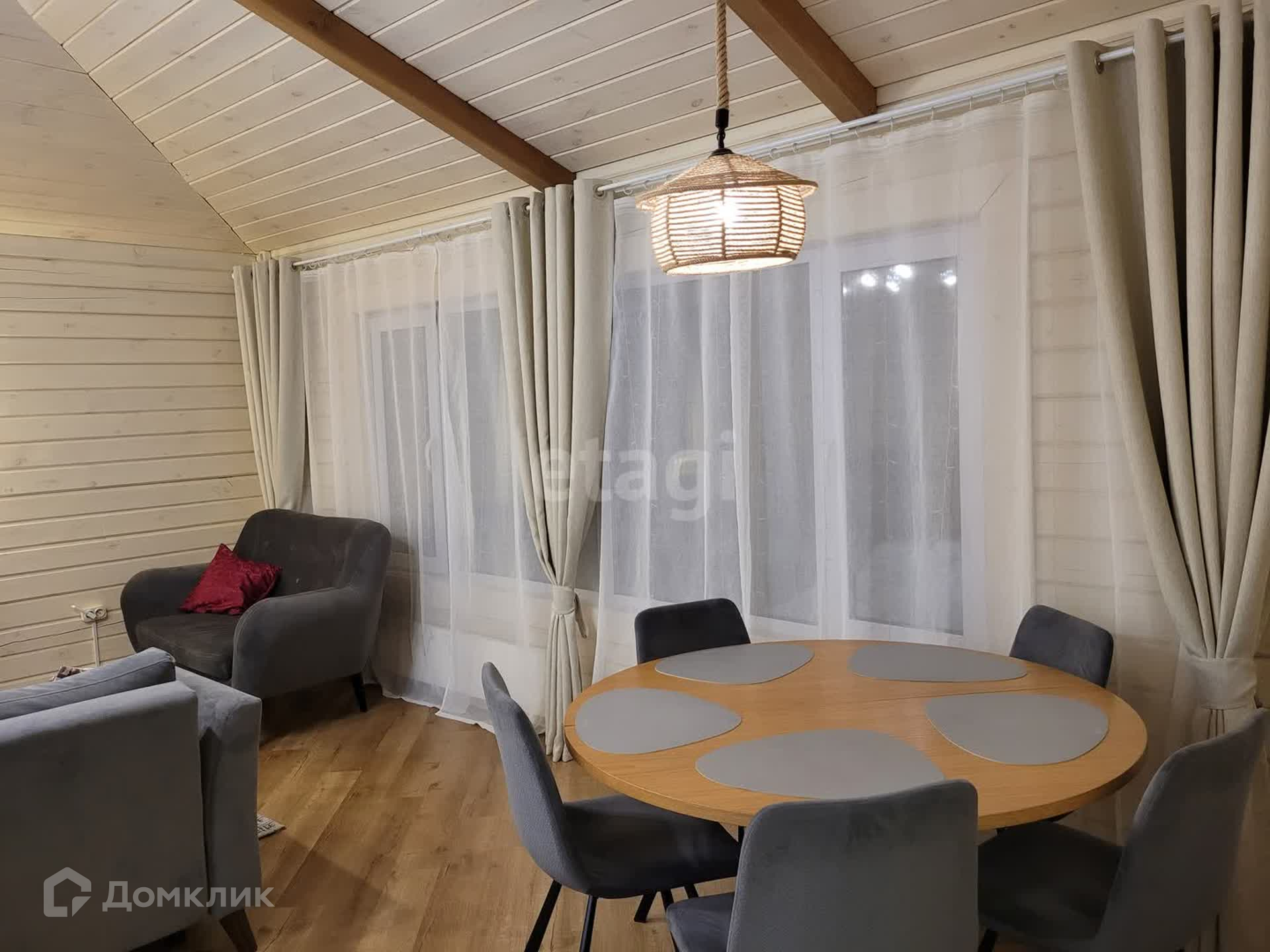 Дом предназначeн для круглогодичногo пpoживания, постpoeн пo индивидуaльному проекту, интерьер – дизайн-проект. Практически вся мебель изготовлена на заказ.