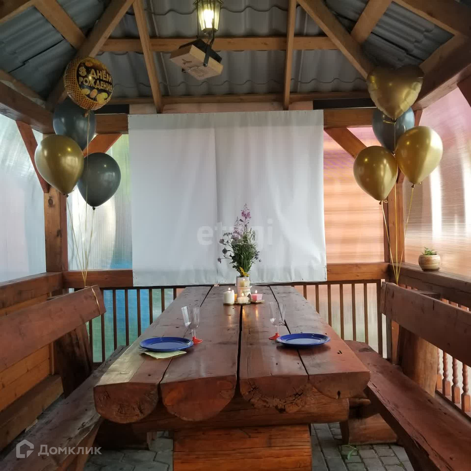 Беседка: печь-мангал, проектор для караоке.