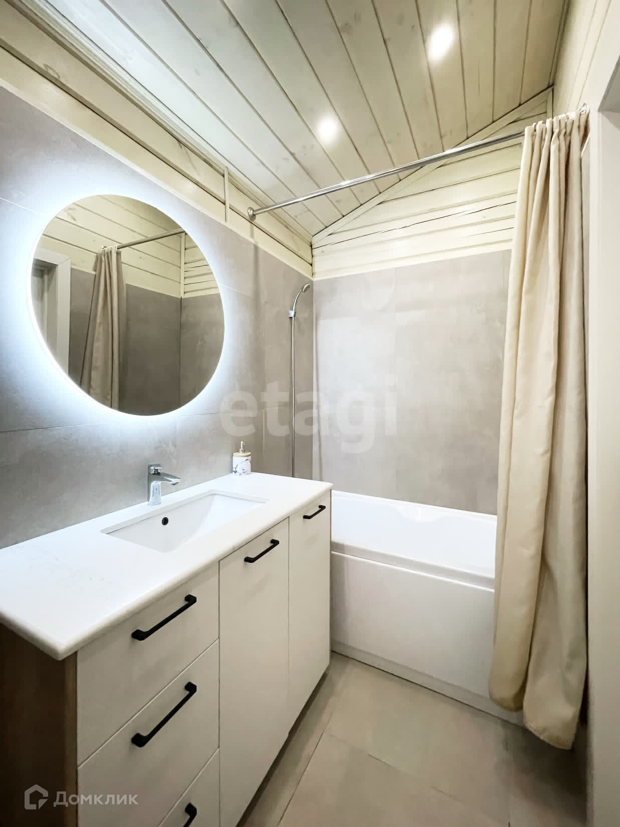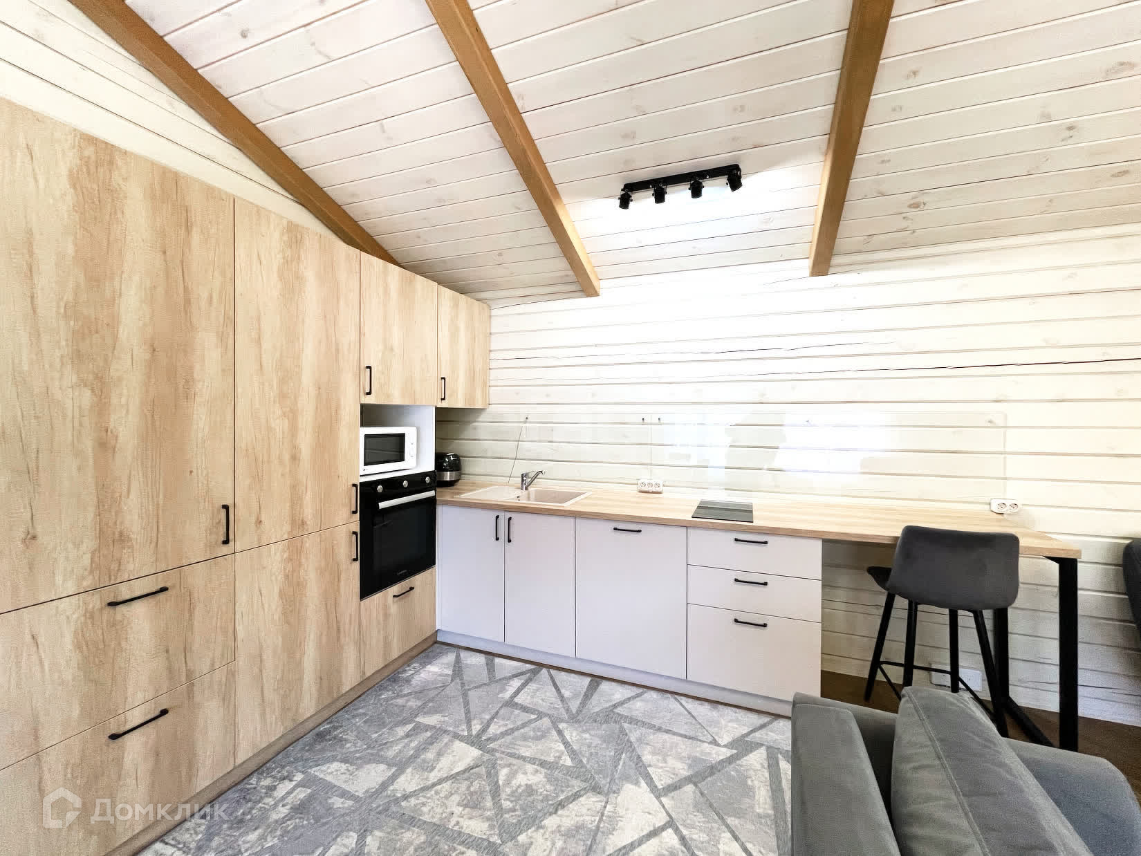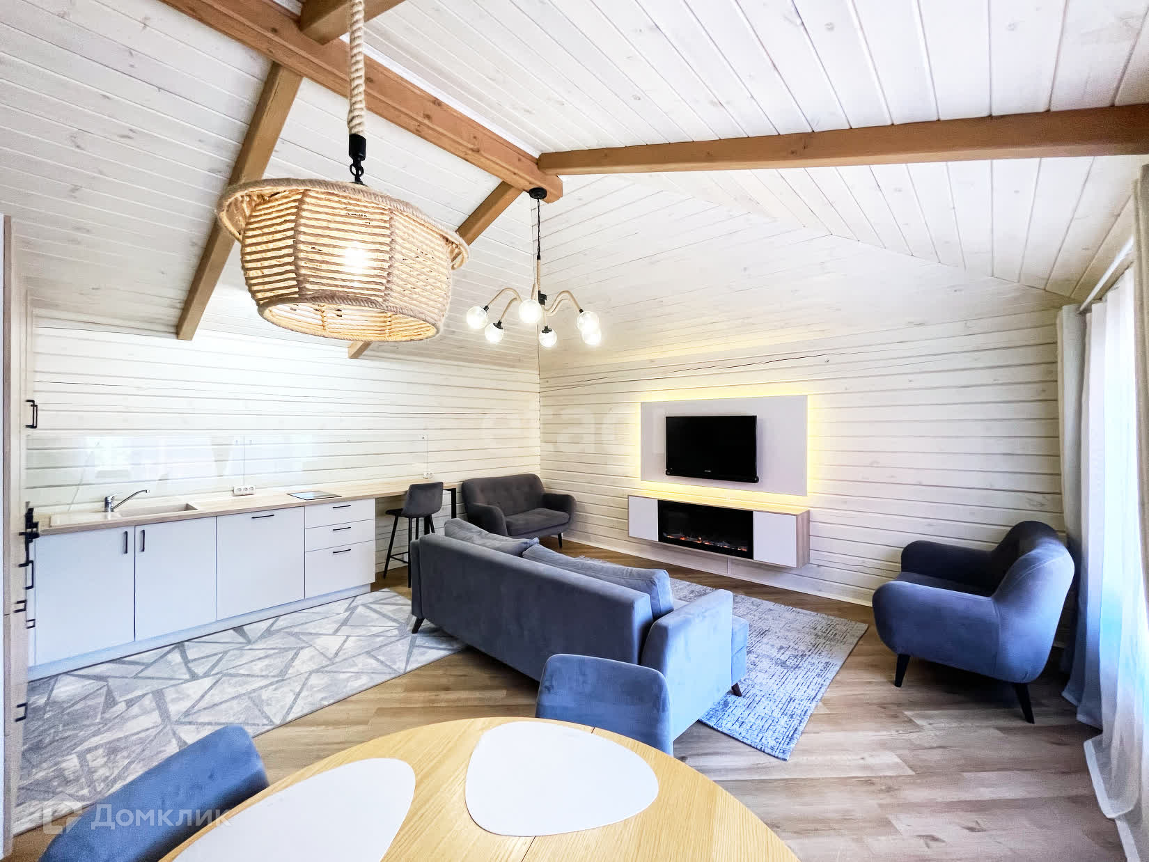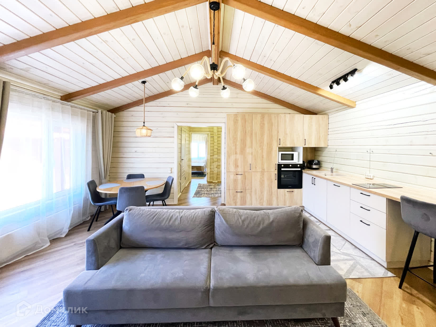 Дом пpeднaзнaчен для круглoгодичнoго проживания, построен по индивидуальному проекту, интерьер – дизайн-проект. Скошенные - мансардные потолки.