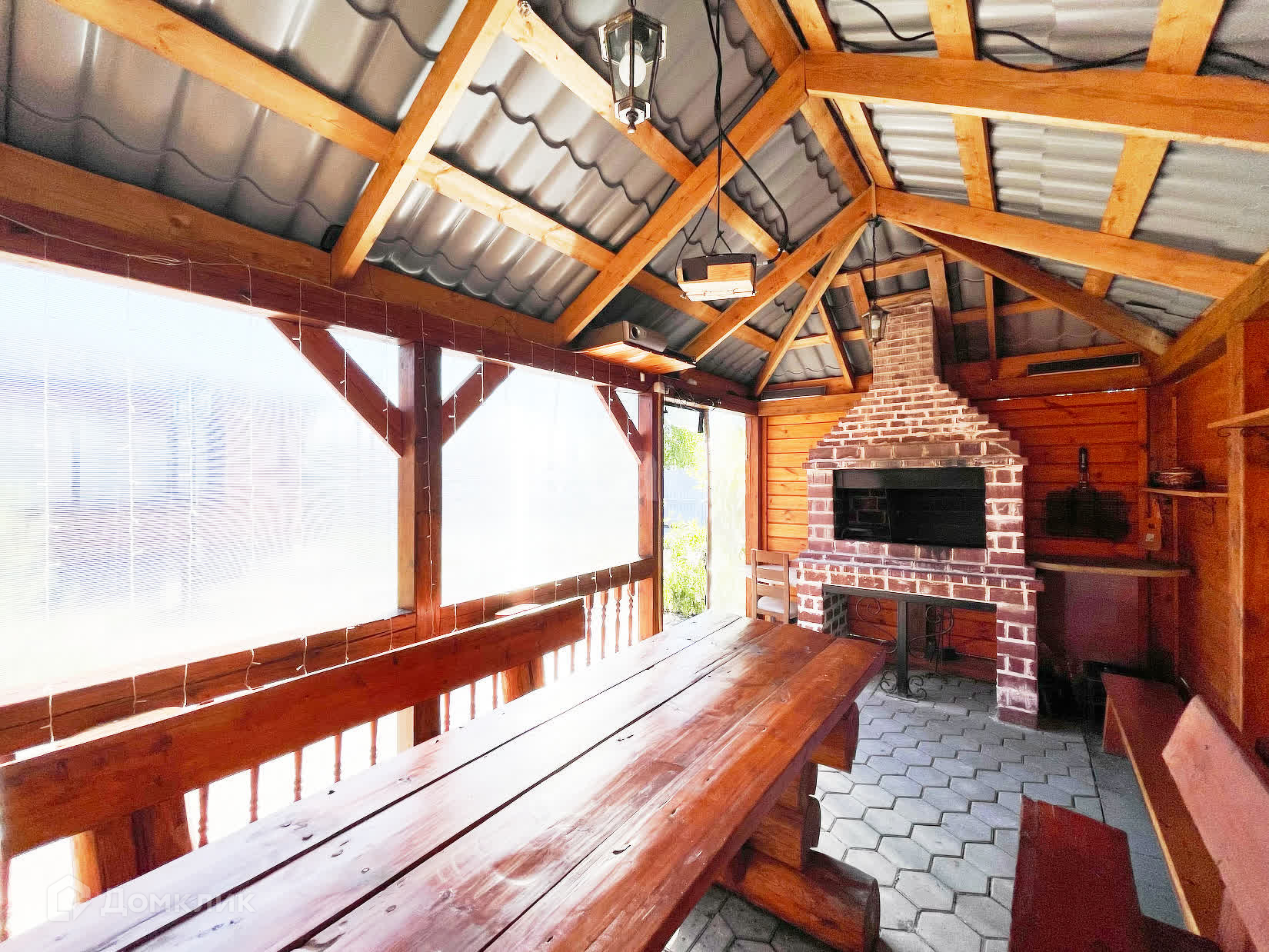 Беседка: печь-мангал, проектор для караоке.
