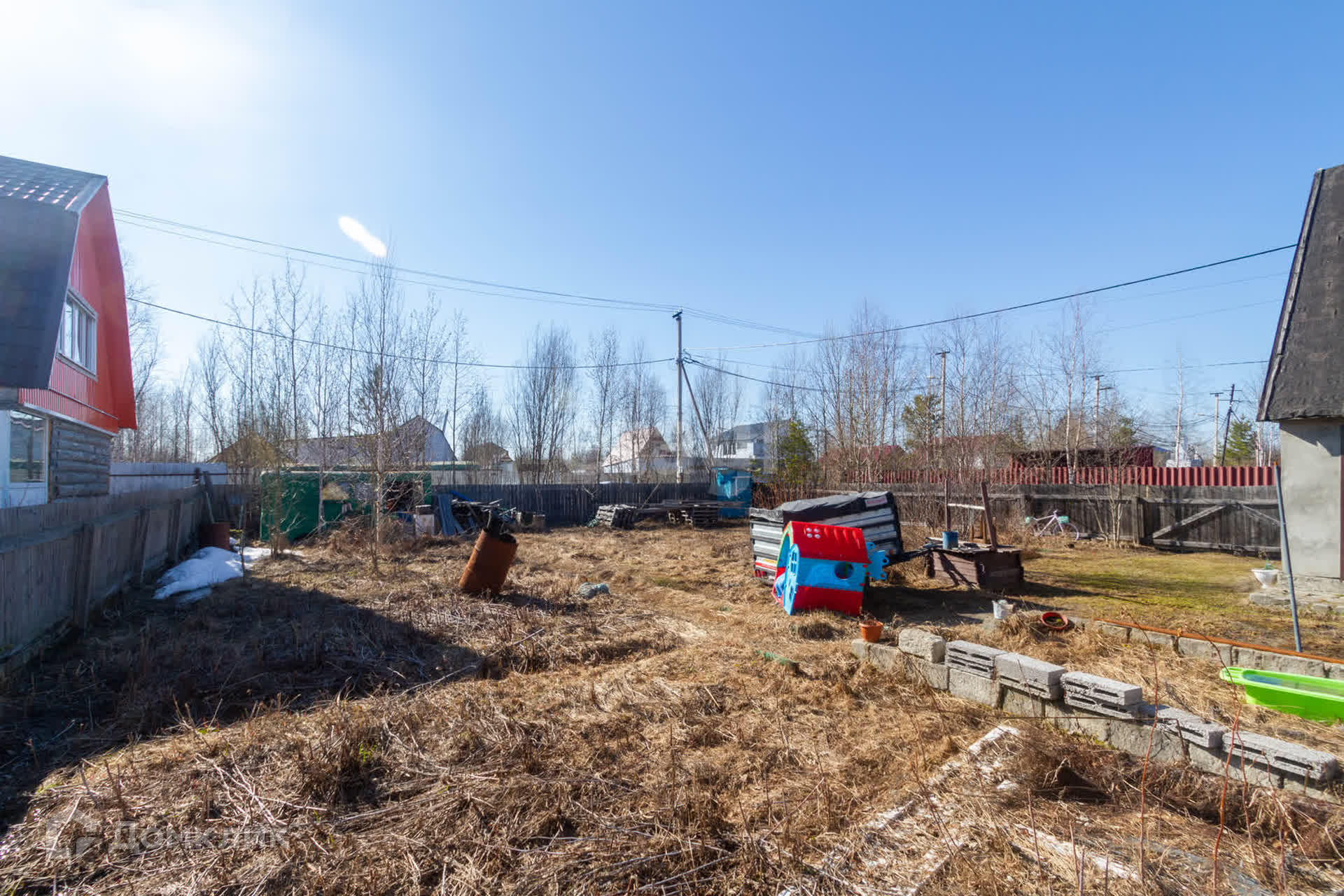 Участок расположен недалеко от центральной улицы и автобусной остановки, что обеспечивает удобный доступ к транспорту. Автобусы ходят круглый год, а дороги регулярно чистятся зимой.
