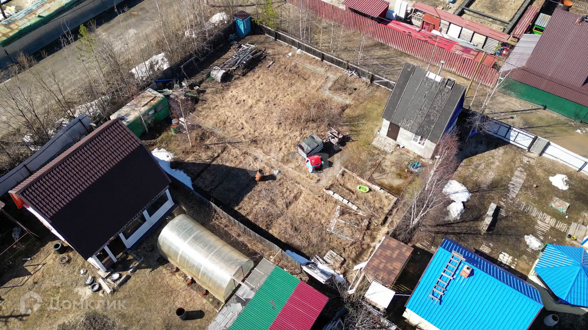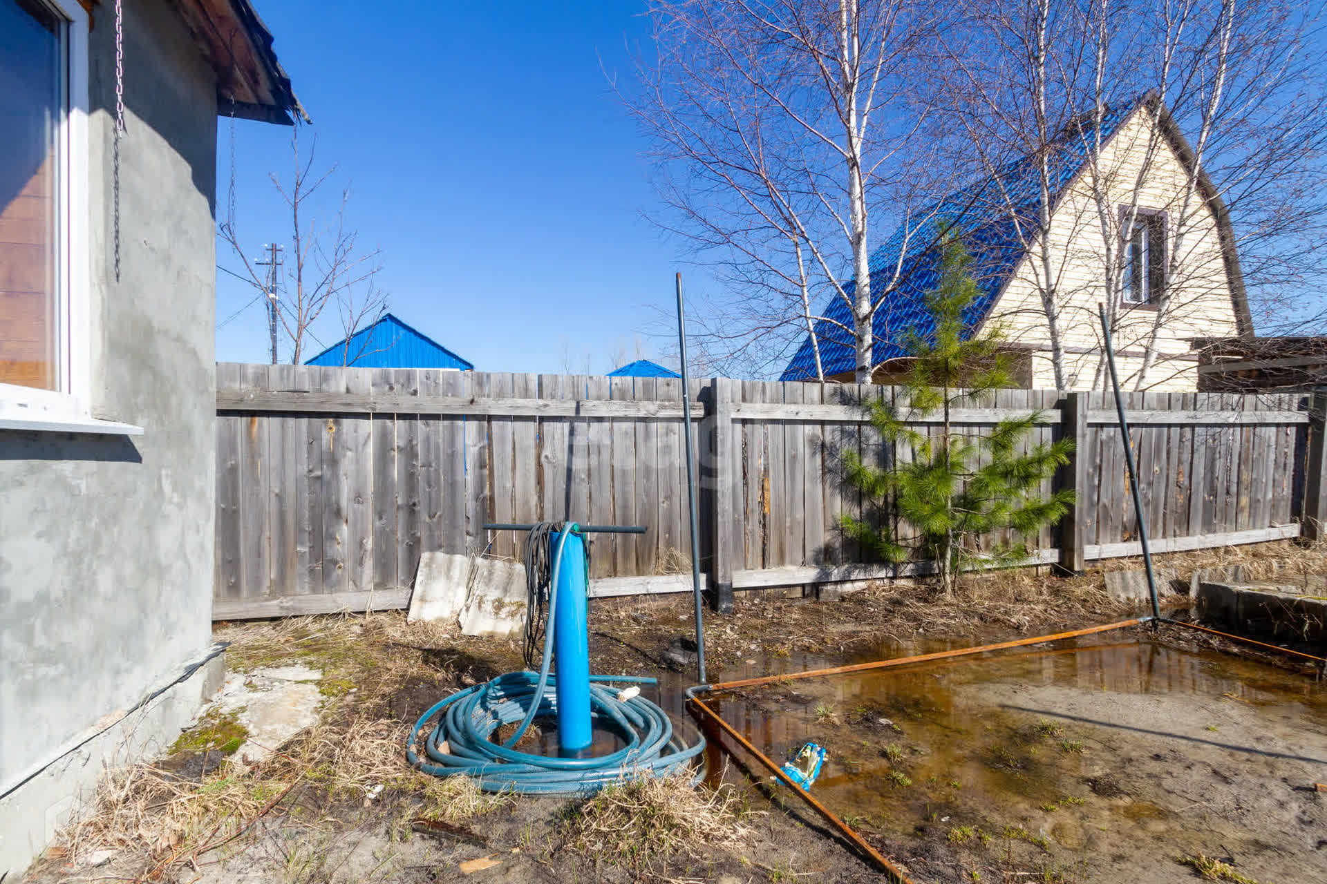 На участке есть новая скважина глубиной 20 метров и сарай для хранения садового инвентаря. Растут плодово-ягодные насаждения: малина, чёрная смородина, ирга, а также обустроены грядки.