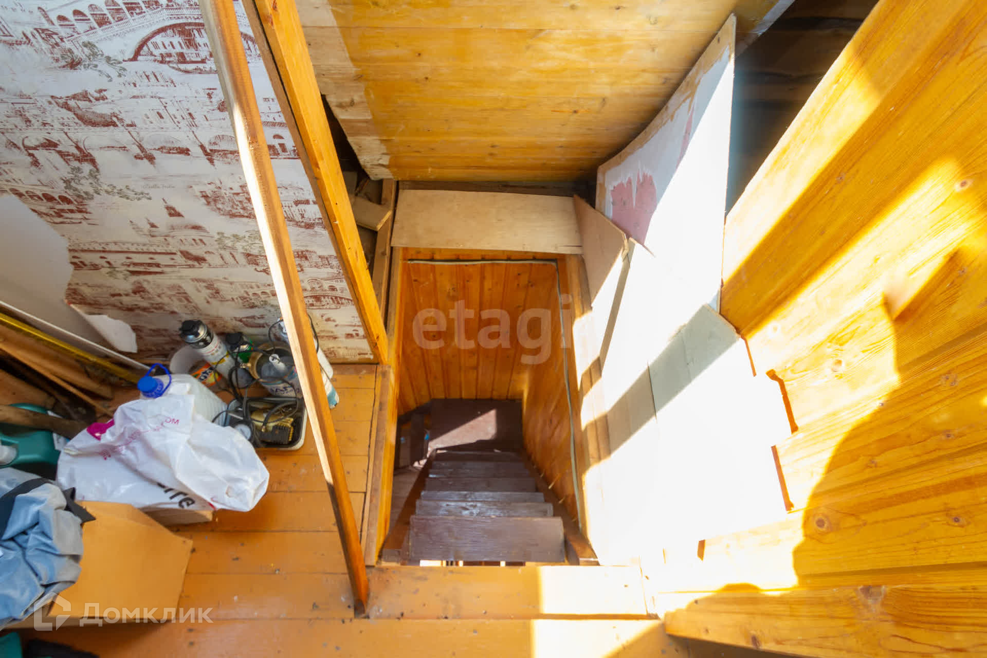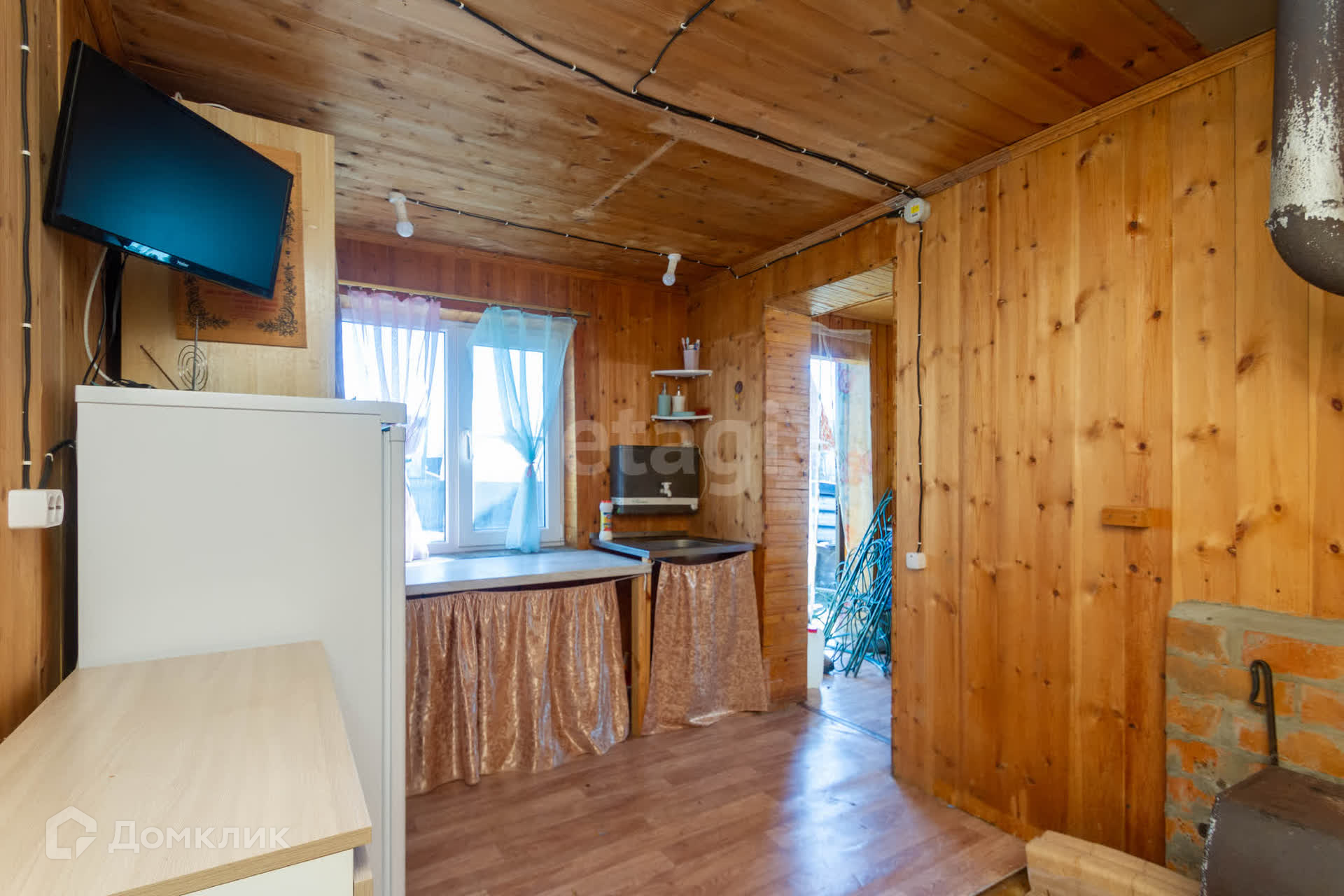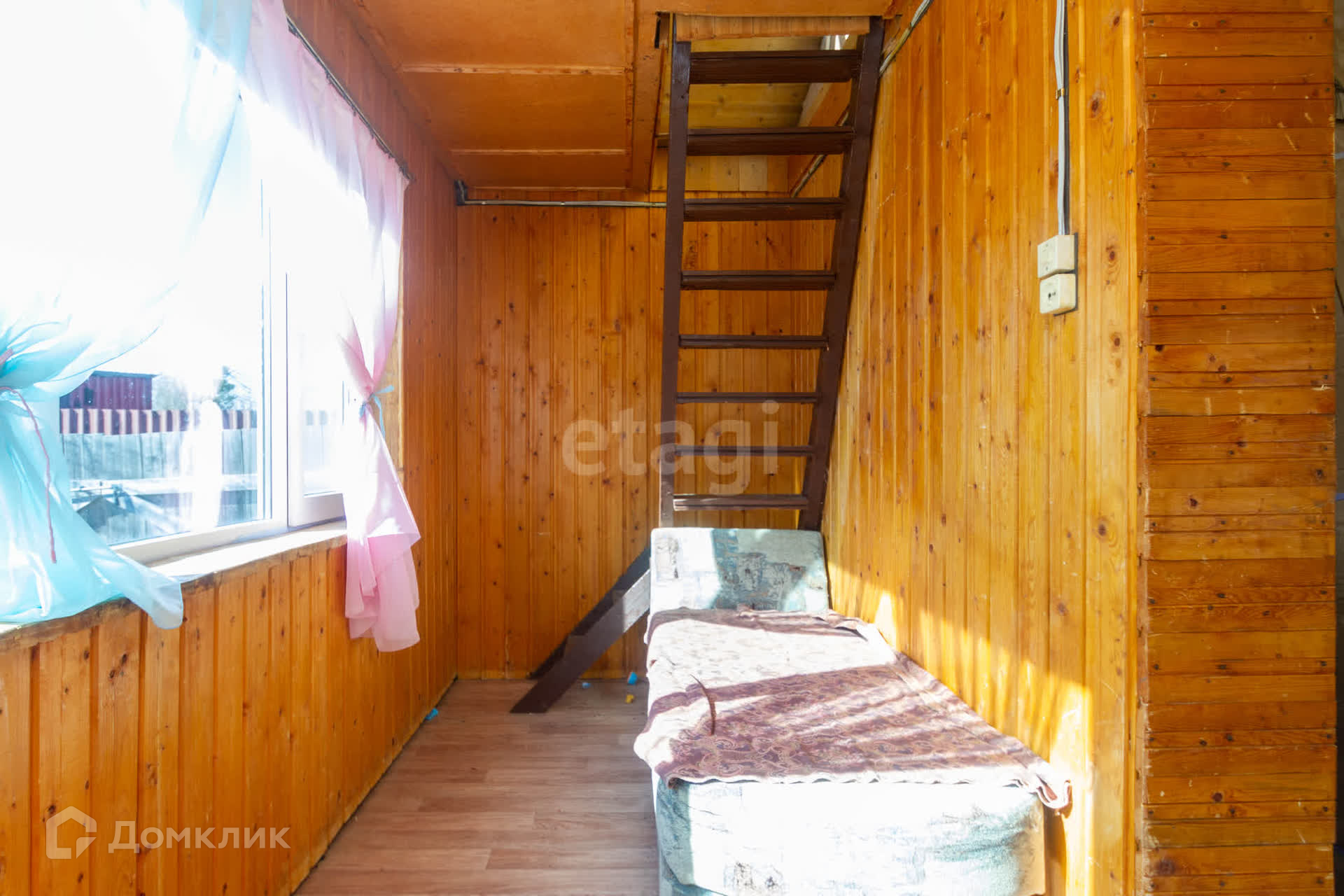 На участке в пять соток расположен небольшой дом. В доме печное отопление, недавно был сделан ремонт: заменены полы и электропроводка. Мансарда на втором этаже подготовлена под будущие ремонтные работы.