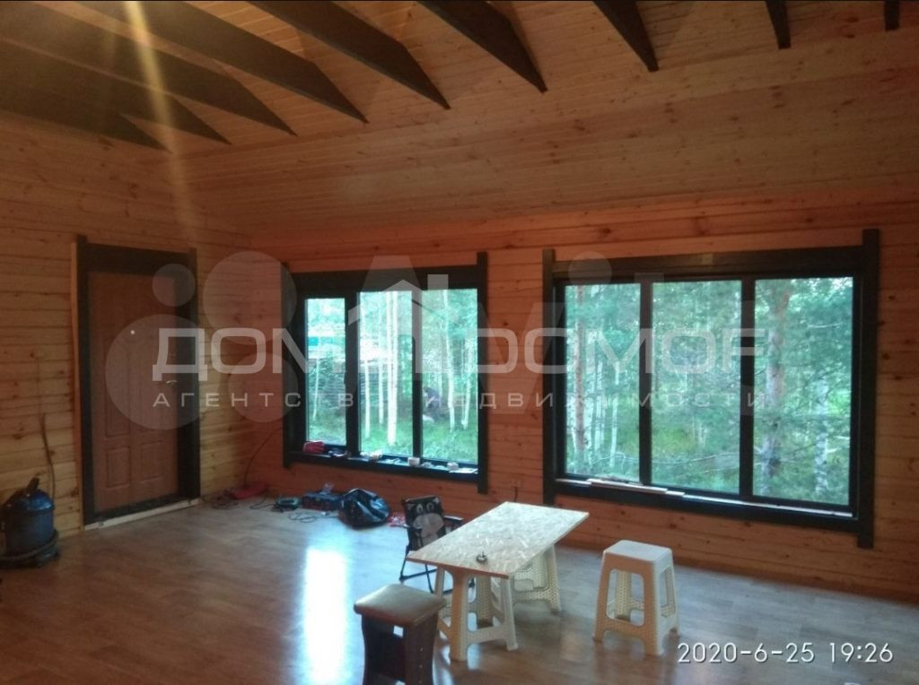 Дом 6 на 6 без внутренних перегородок на сваях очень тёплый, зимний вариант, из профилированного бруса с утеплением 15 см, в доме печь-камин. На участке двое ворот (распашные 5 метров и откатные 6 метров), вагончик 3 на 7 используется как сарай, скважина, уличный туалет стоит над септиком 4 куба (половина бензовоза) , теплица, электричество 380 V. Из насаждений: хосты, пионы, лилии, клубника, жимолость, смородина, вишня, манчжурский орех, крыжовник, малина, большая часть участка берёзы, сосны, кедр. Автобусная остановка на соседней улице, два рейсовых автобуса ходят круглогодично, детей в школу возит школьный автобус, до участка можно ездить по главной асфальтированной дороге.
