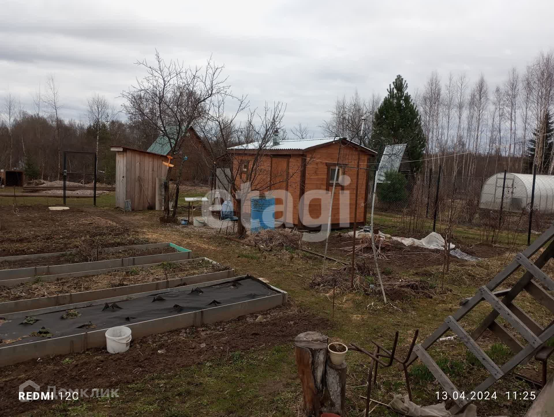 Земля обработана,имеются различные сельскохозяйственные насаждения.( яблоня,слива,малина,смородина.)