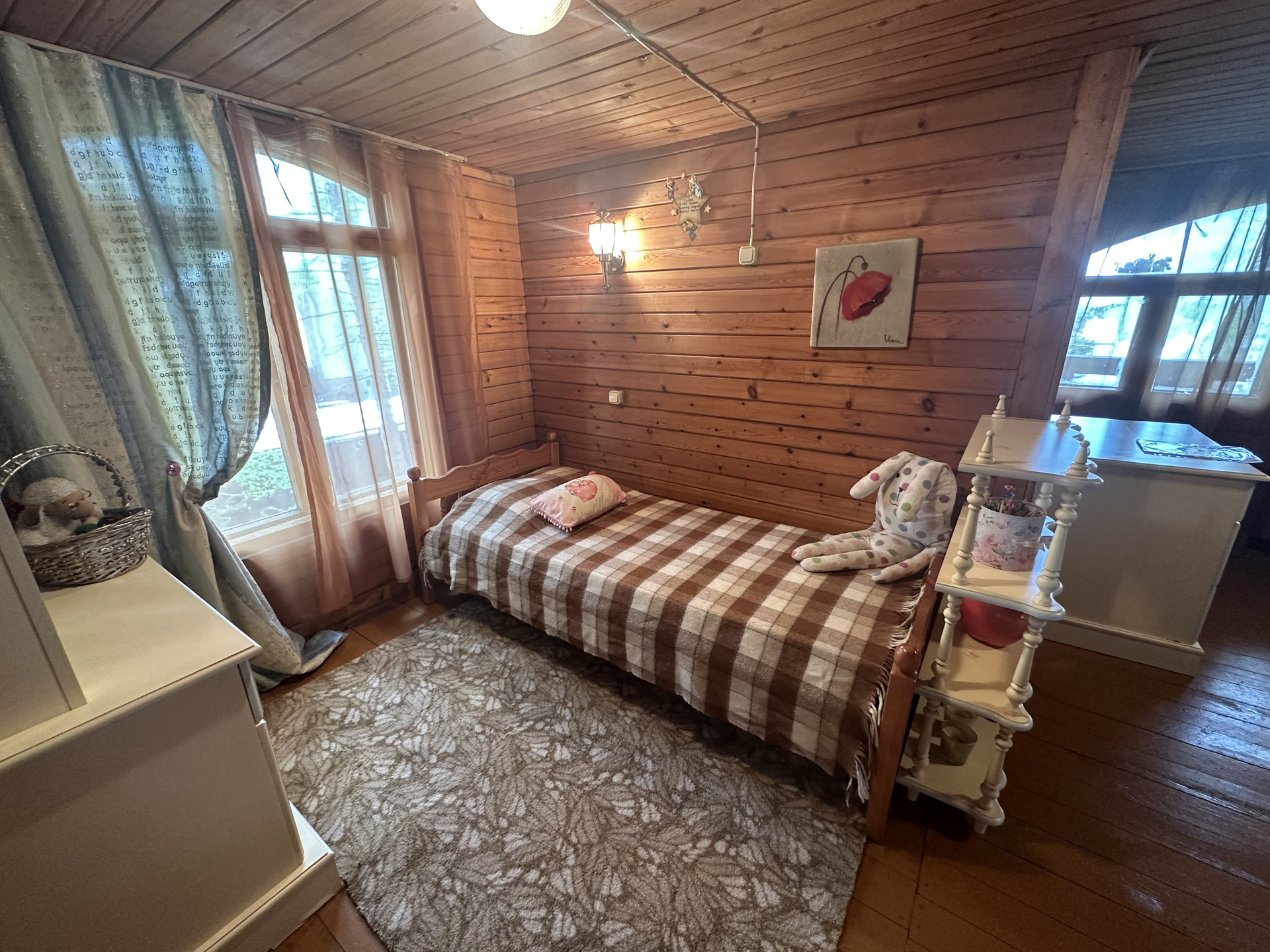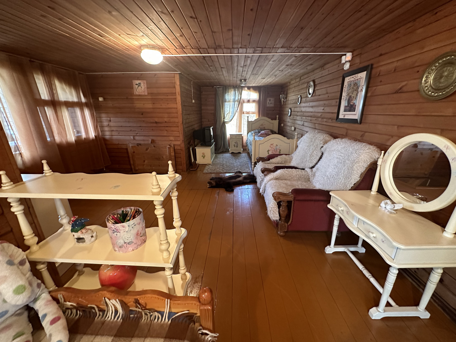 + жилой дом 2-этажный, брусовой 18х18, обшит вагонкой, площадь 102 м2, дом 2001 года постройки; планировка: 1 этаж- гостиная 25 м2 с действующим камином, кухня 15 м2, совмещенный санузел, веранда, 2 этаж- просторная спальня 25 м2 с выходом на балкон, вместительные ниши для хранения;