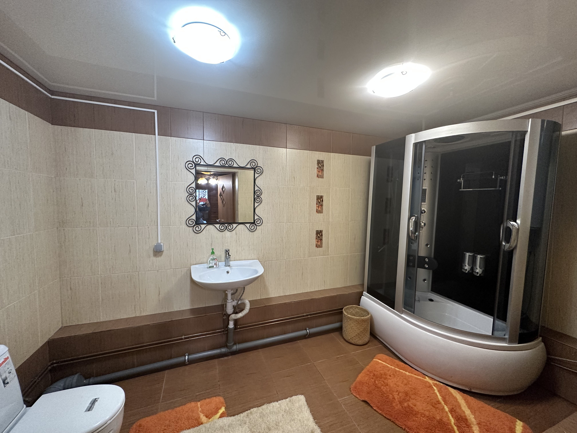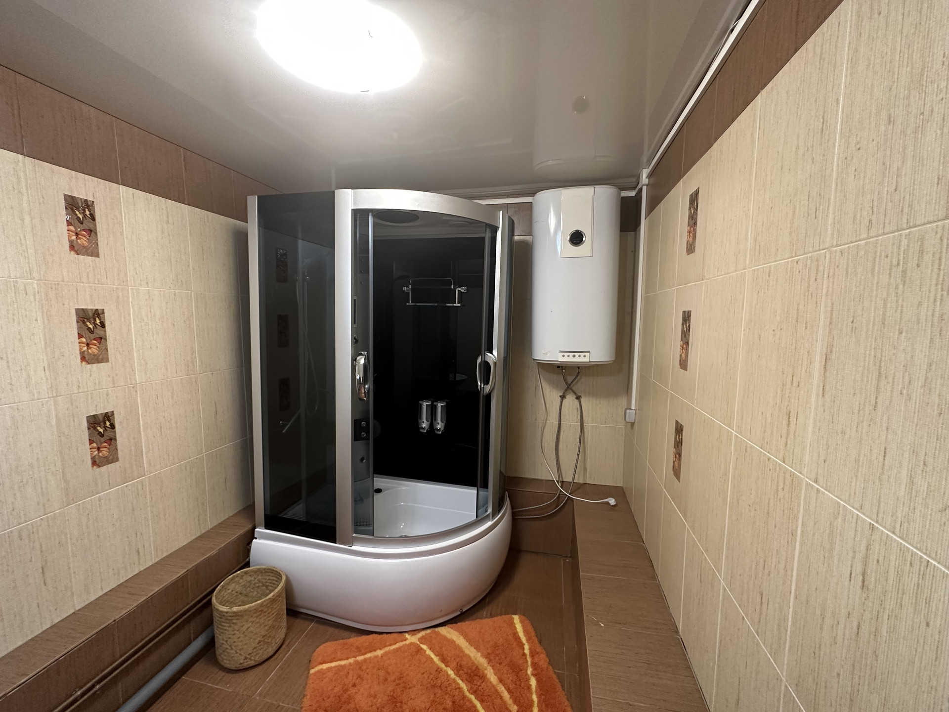 + благоустроенный санузел: установлен унитаз, душевая кабина, кафель;