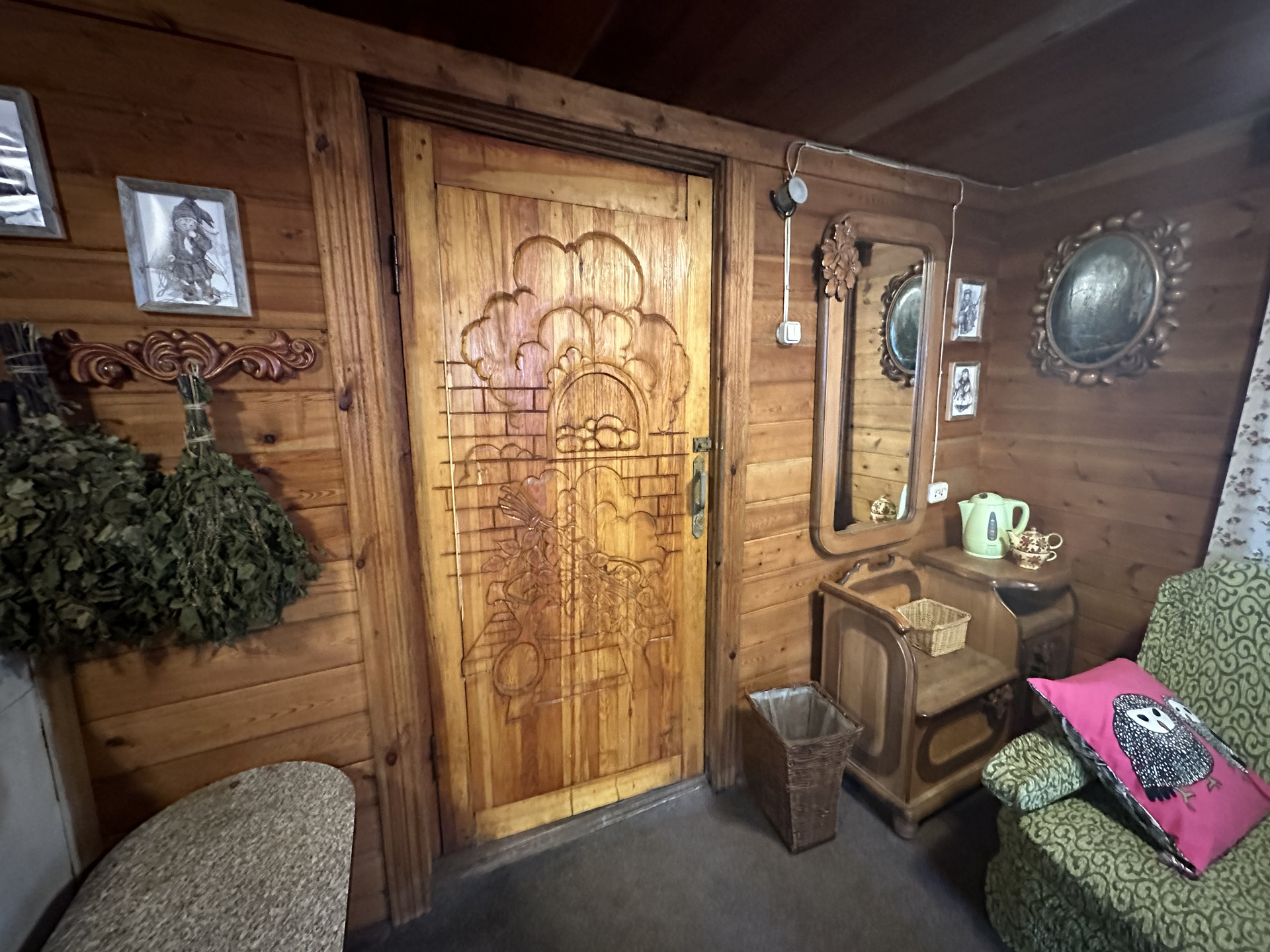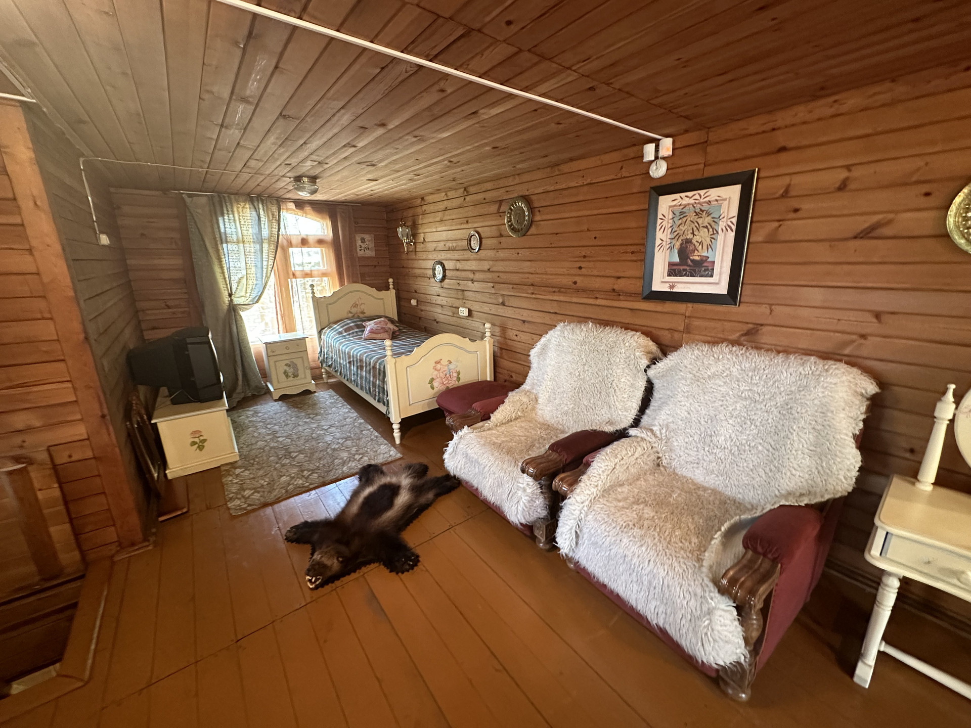 + баня 43 м2 из строганного круглого леса (диаметр 25 см) с отличной парной, комнатой отдыха и большой открытой верандой;