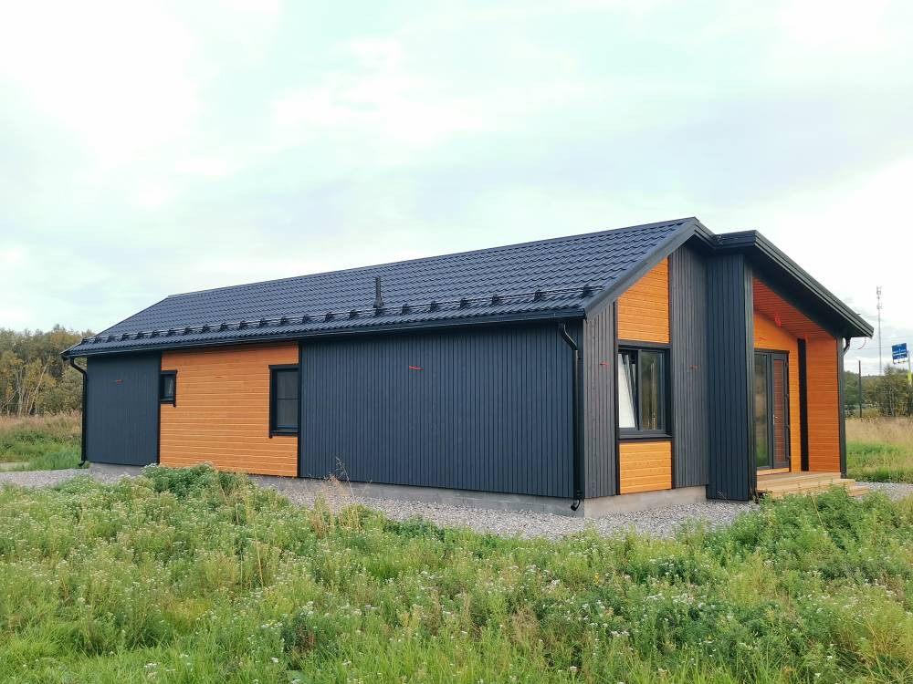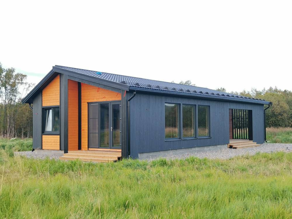 От компании-застройщика «NordElement» Вы получаете утепленный финский фундамент и конструктив дома. Элементы конструкций дома изготовлены в заводских условиях в виде панелей по технологии «ПРЕФАБ», которые затем собираются на фундаменте.