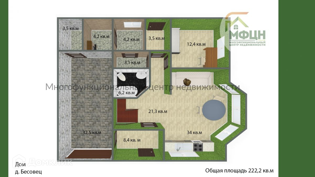 Общая площадь 222.2 м2