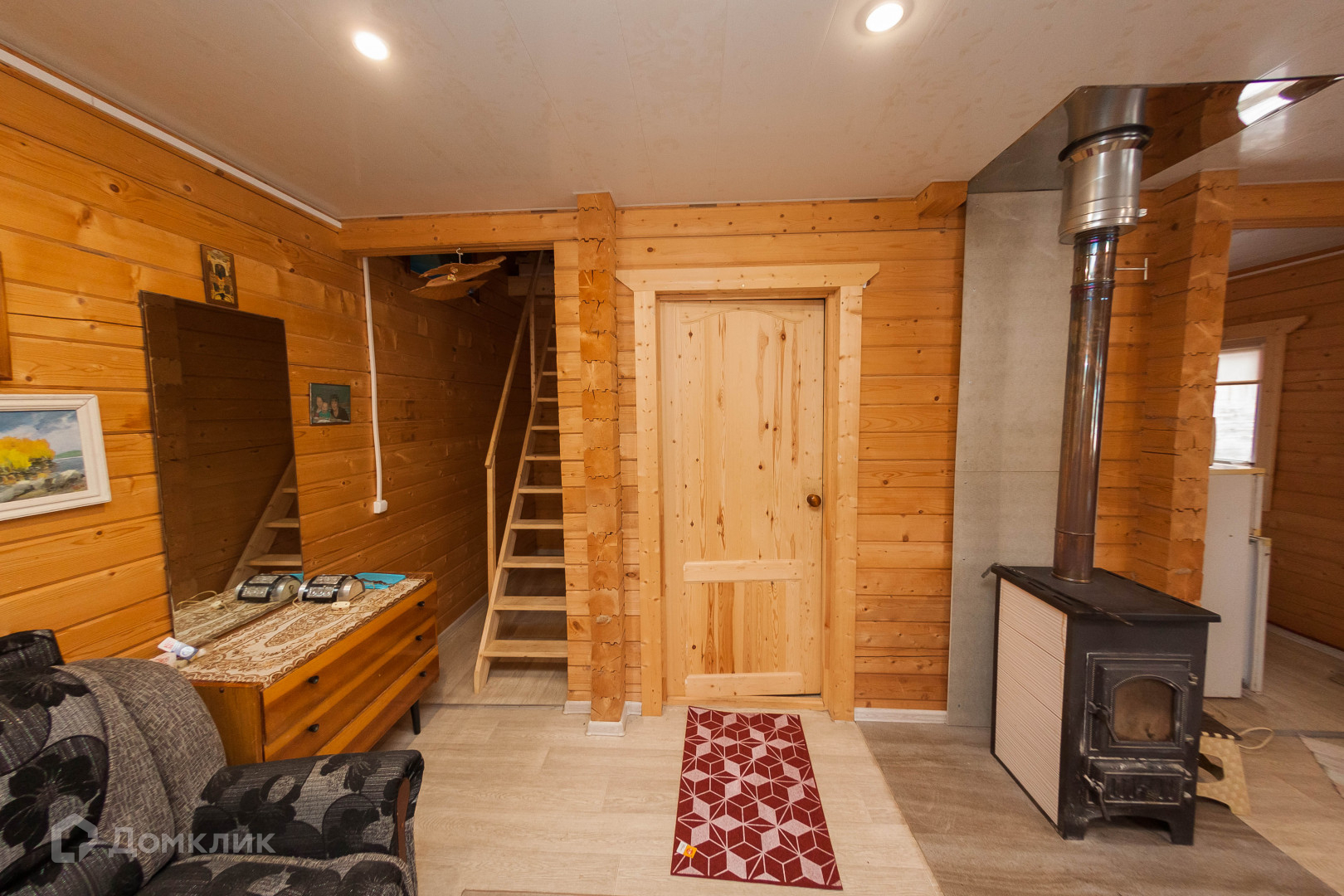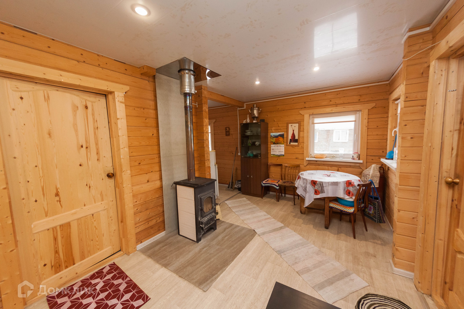 Первый этаж отапливается за счет печи. На втором этаже отопление конвекторами. Дом выдержан в одном стиле, в спокойных тонах.