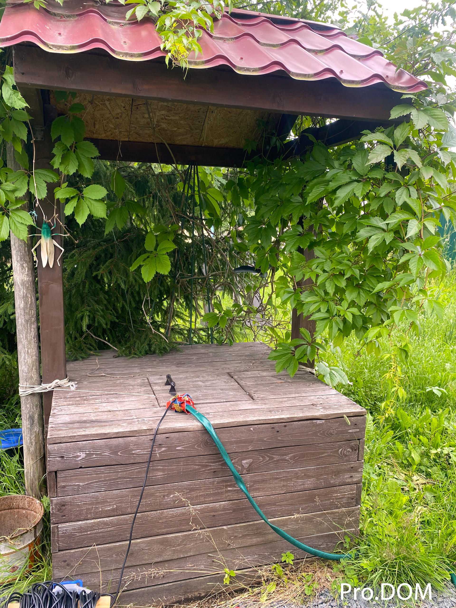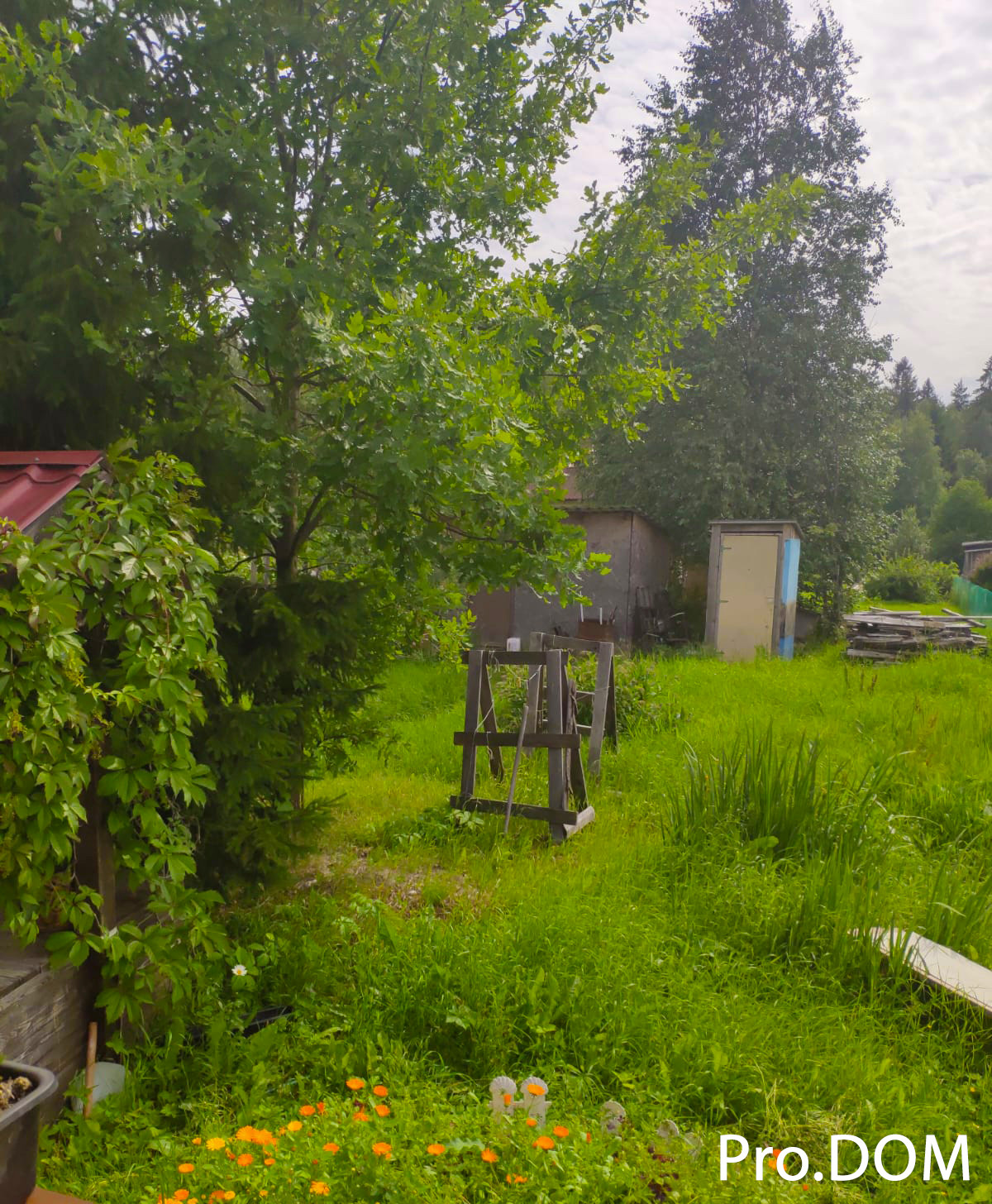 Плодовые деревья и кустарники, скважина (техническая вода, стоит насос для полива). На участке очень красиво и уютно.