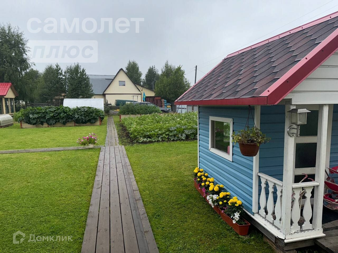 Для ваших малышей есть домик для игр и большая лужайка с газонной травой