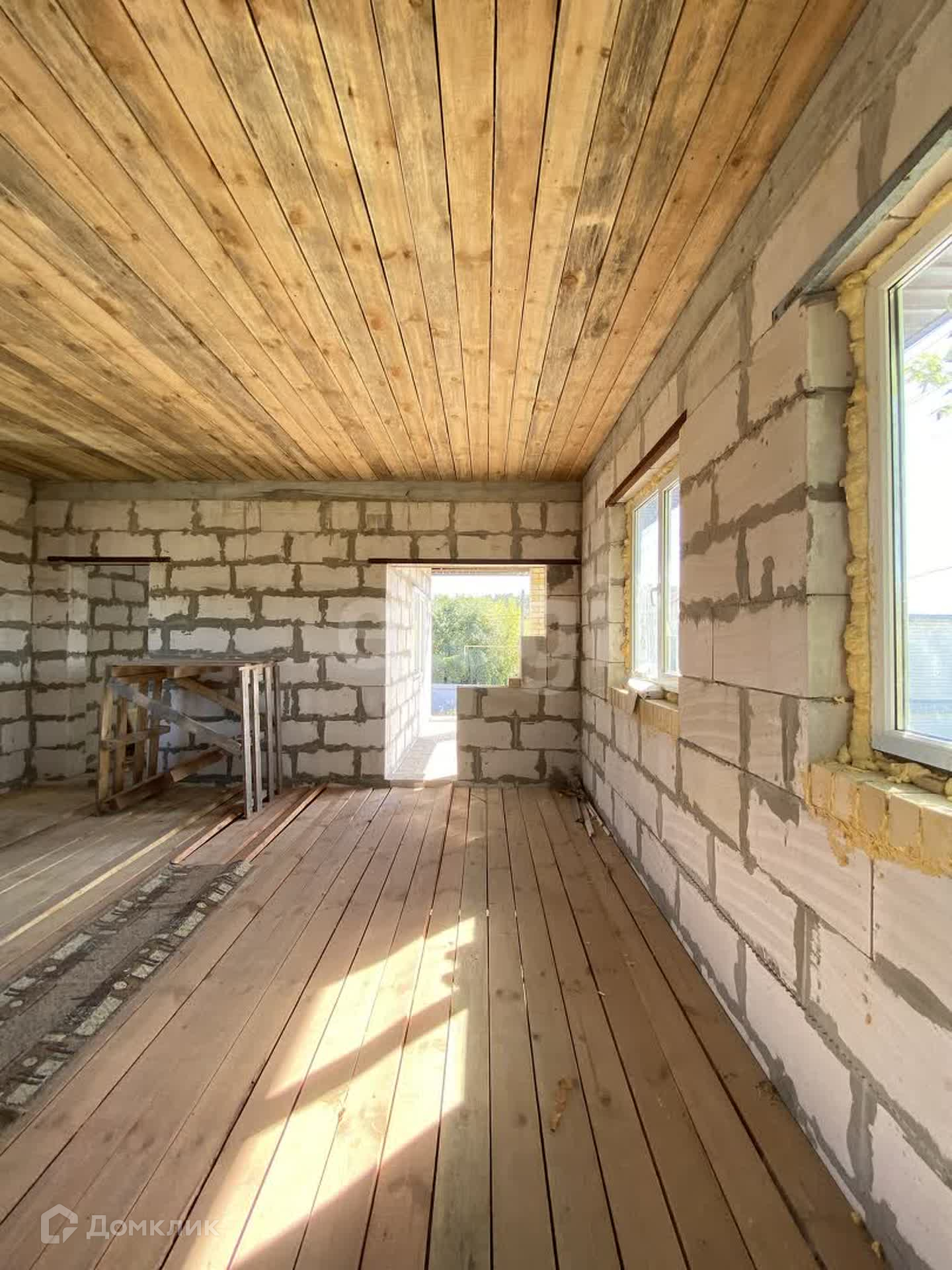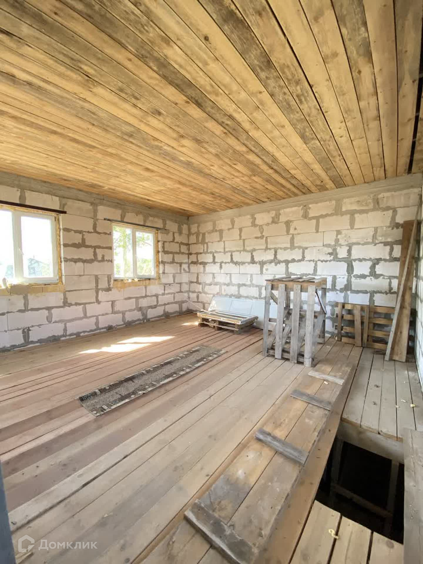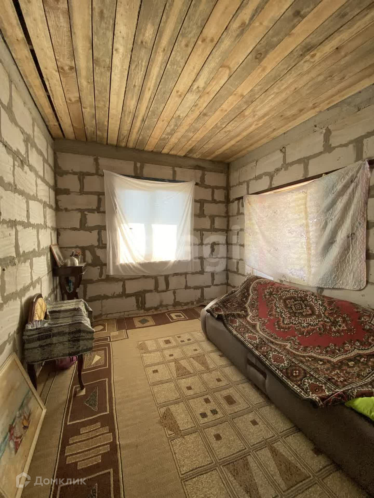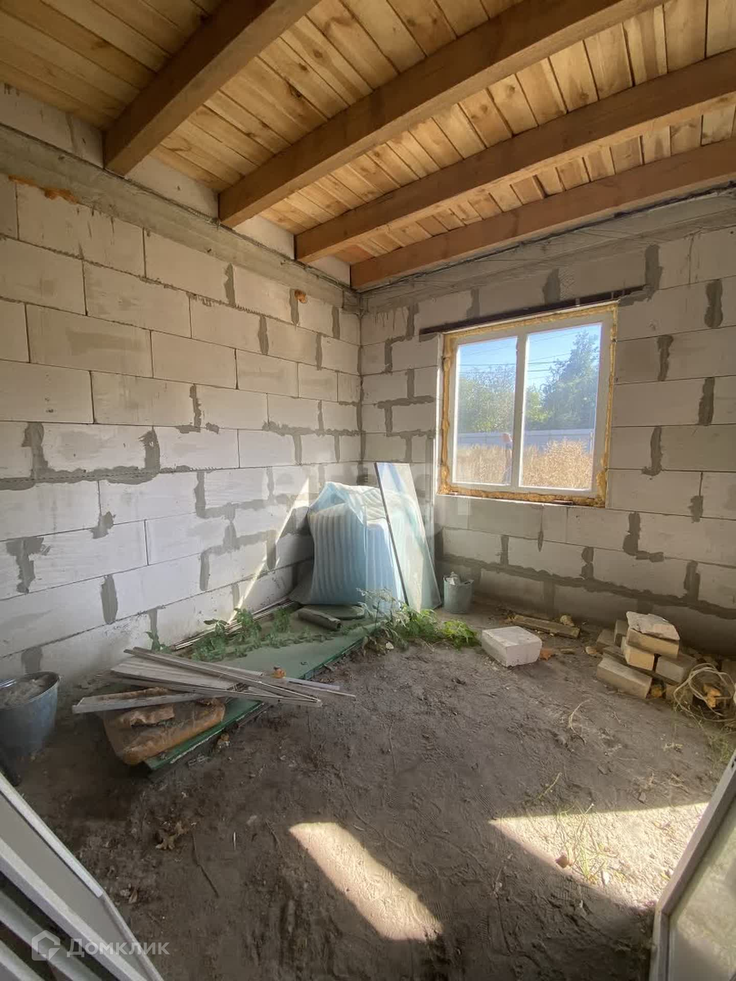 Построен из газосиликата, крыша - металлочерепица.