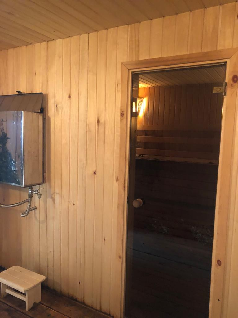Баня- 30 кв, топка со стеклянной дверцей, бак с нержавеющей стали на 80 л,стеклянная дверь между мойкой и парилкой, каменка из нефрит, перидотит, порфирит, парилка отделана абаши.