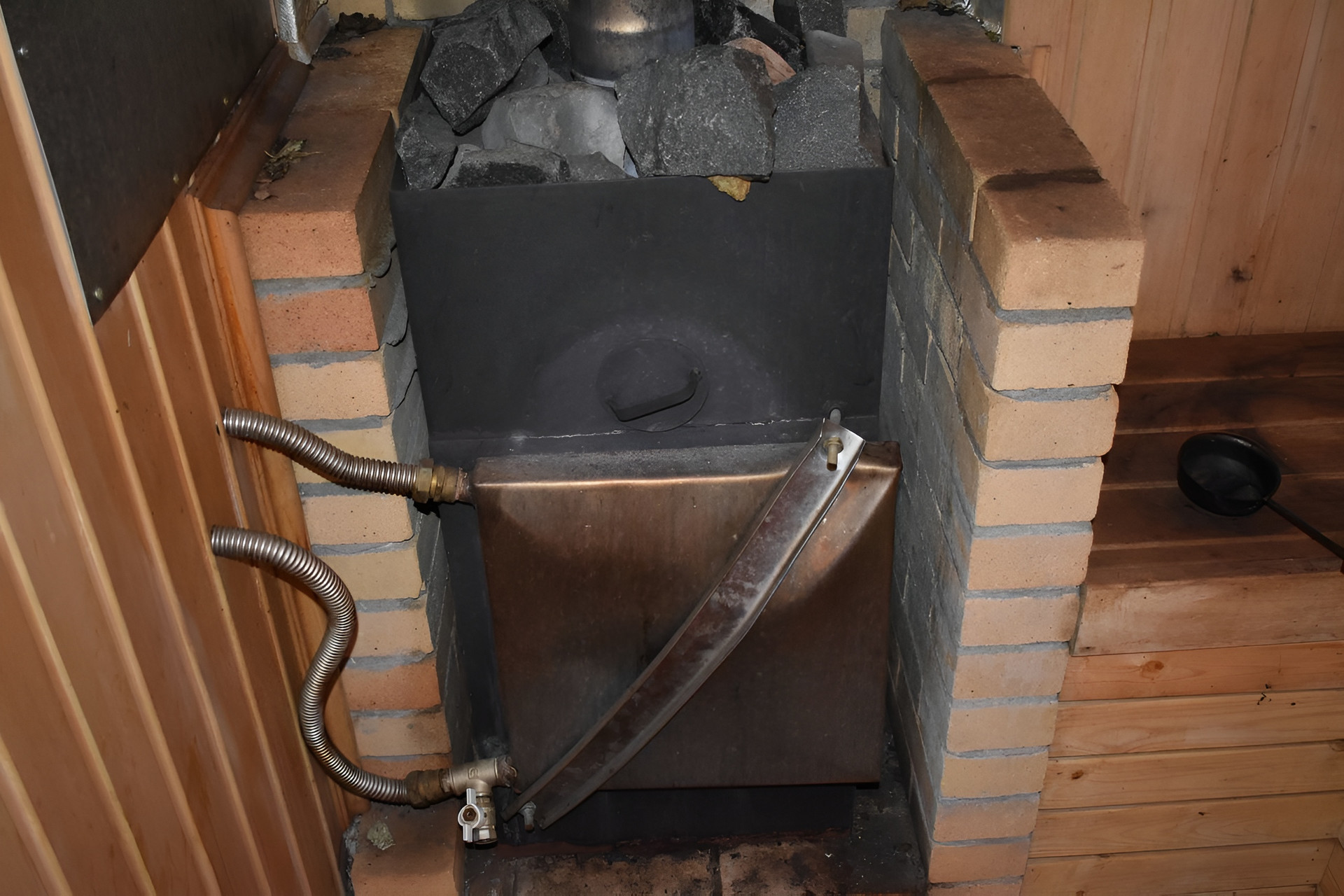 Баня- 30 м2, топка со стеклянной дверцей, бак с нержавеющей стали на 80, стеклянная дверь между мойкой и парилкой, каменка из нефрит, перидотит, порфирит, парилка отделана абаши.