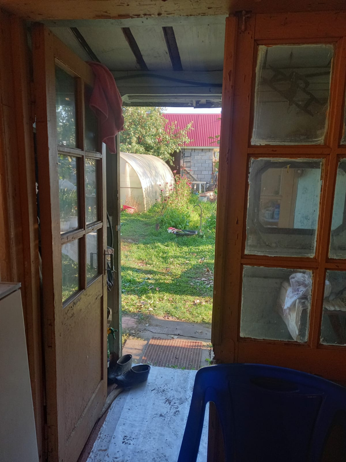 вишня -2, слива синяя, черная смородина - 7 кустов, красная смородина, крыжовник черный, малина, жимолость, виктория, много многолетних цветов (гортензия, розы, пионы, хосты, гладиолусы, лилии и т.д.)