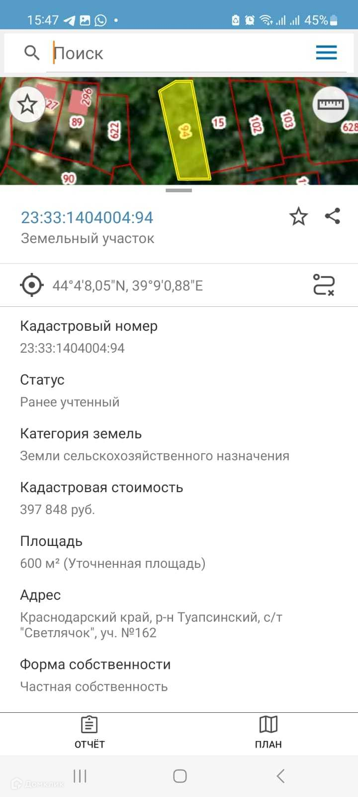 Участок в с. Дедеркой Туапсинский район