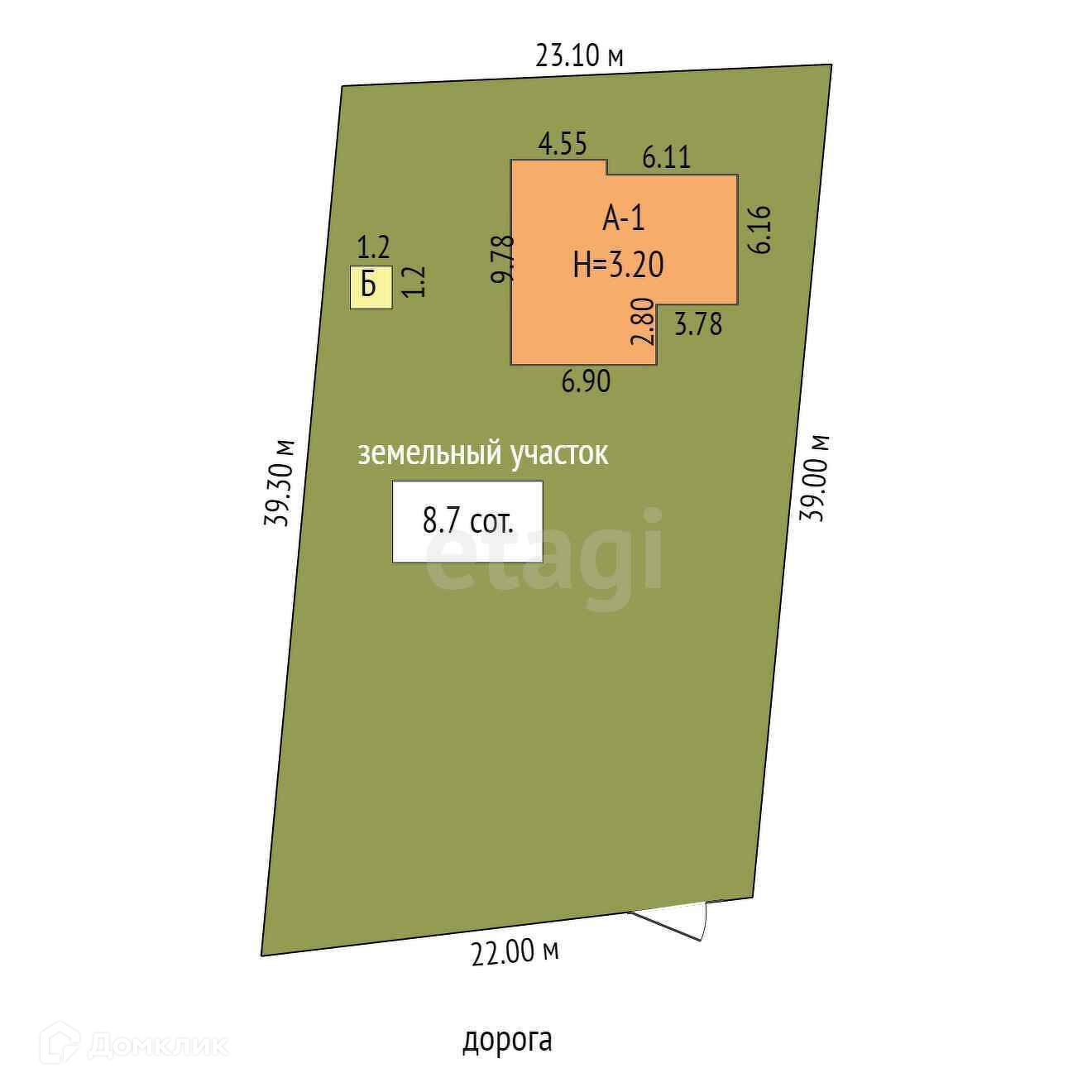 Площадь участка 8.7 сот.