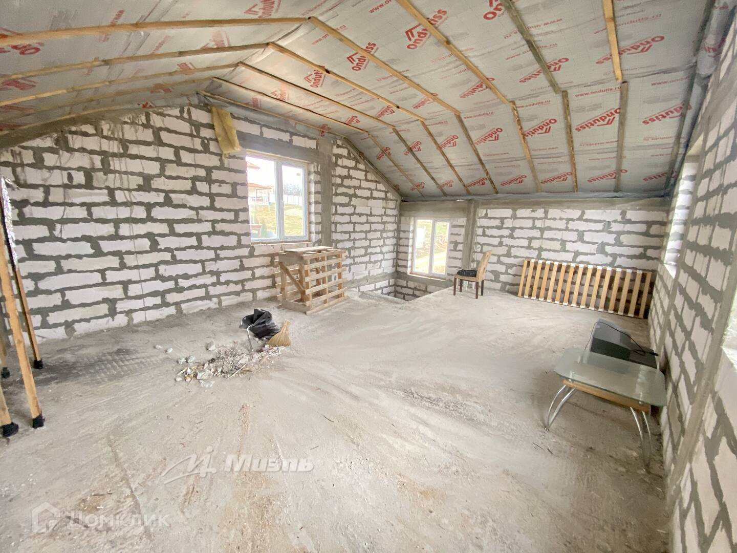 В доме железобетонные перекрытия, крыша металочерепица с утеплением мин.ватой 100мм
