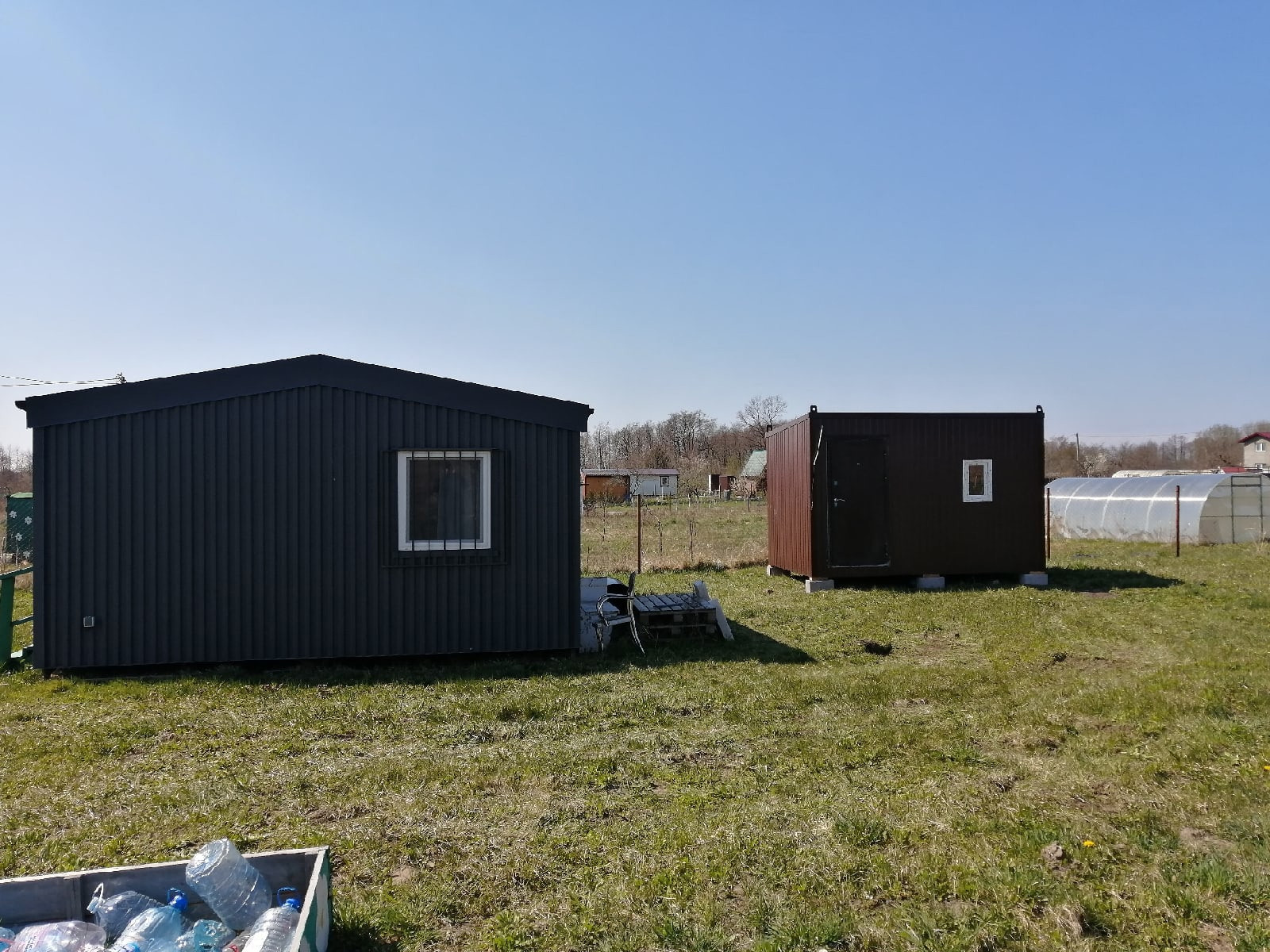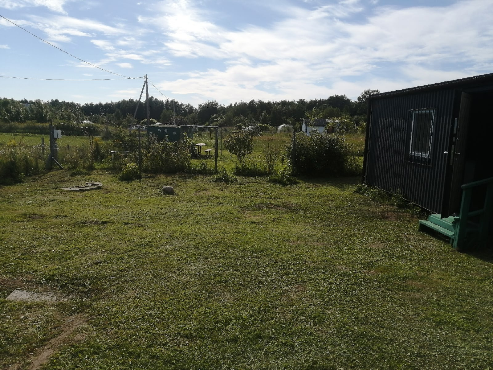 На участке установлена садовая бытовка, площадью 12 квадратных метров. Бытовка подготовлена для подключения электричества: электрическая разводка, выключатель, розетка, светодиодная панель. Весь рабочий инвентарь остается новым владельцам.