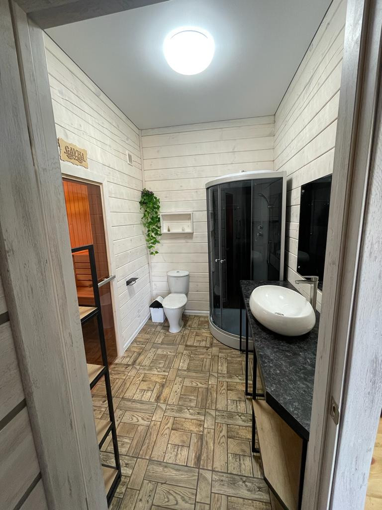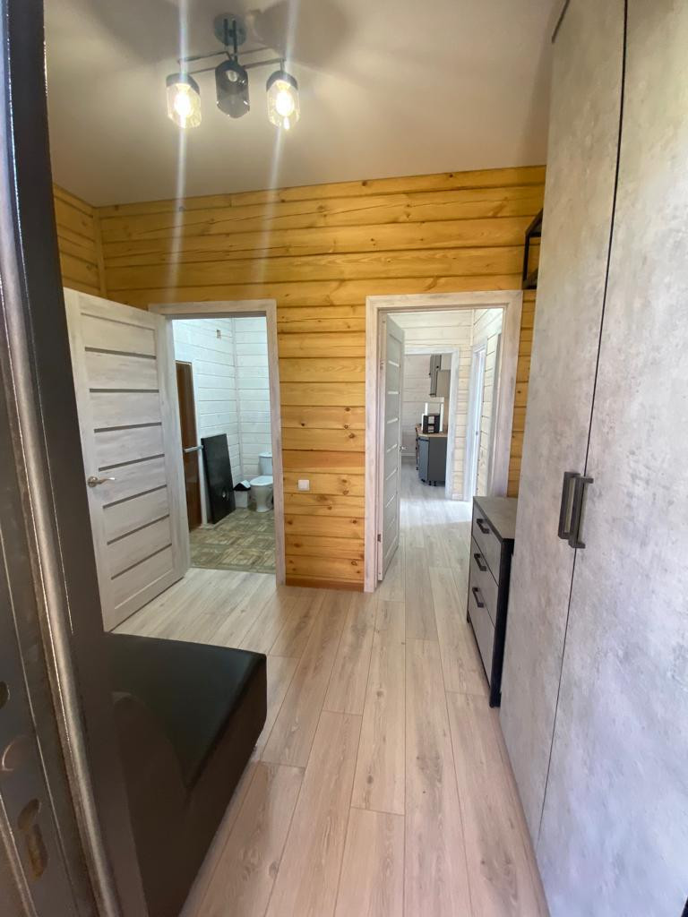 Дом построен из профилированного зимнего таежного бруса зимой 2021 года, отстоялся, прошёл усушку, полностью отшлифован с обоих сторон, пропитан пропиткой тикурилла. Скважина 35 метров, септик, отопление электрокотел, в бане и с\у тёплый пол, пол доска+ дсп + ламинат Окна пластик veka, потолок натяжной.