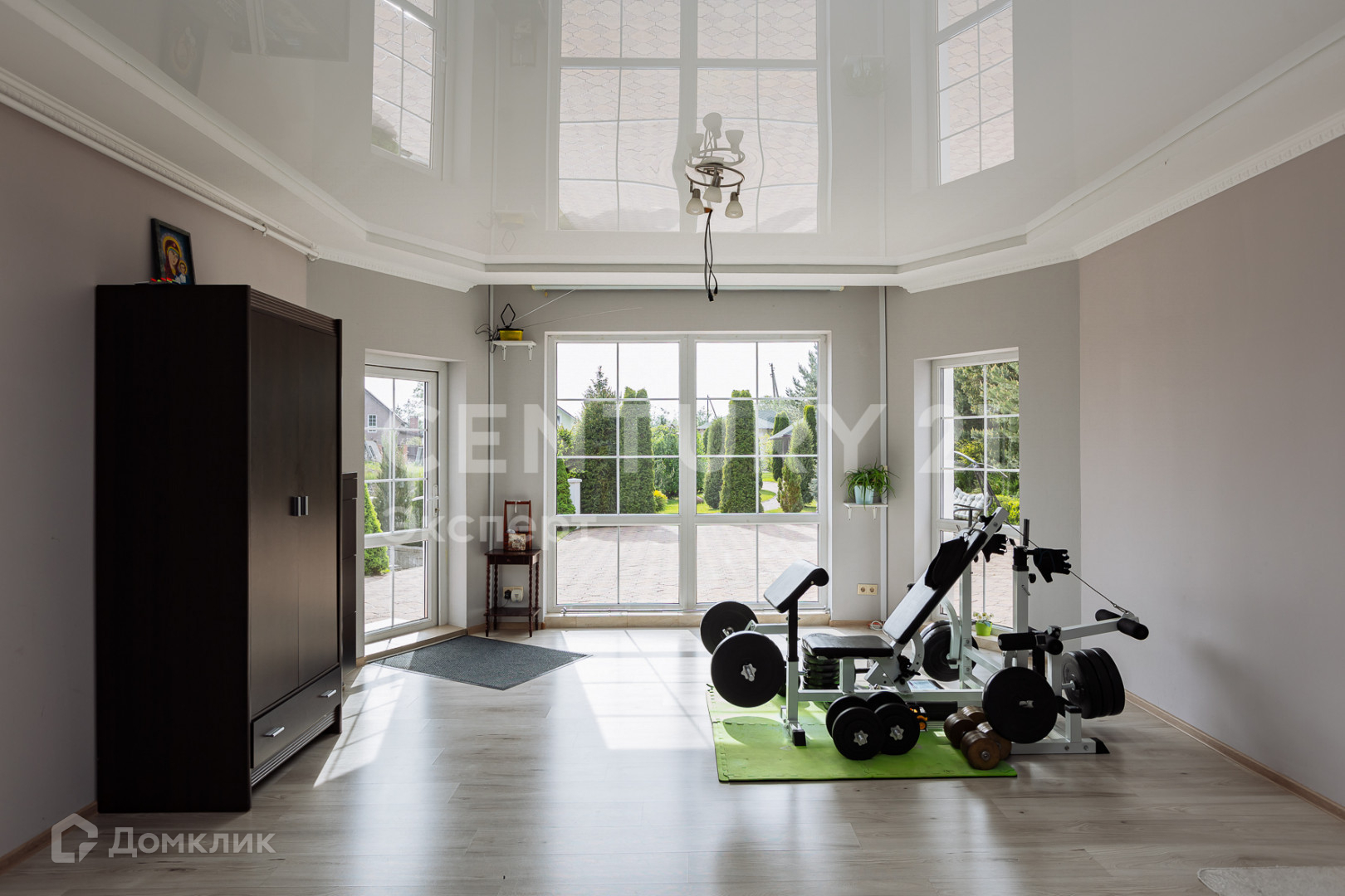 В доме оборудован спортзал, также в указанном зале возможен просмотр фильмов через проектор, для этих целей из потолка  выведены соответствующие провода.